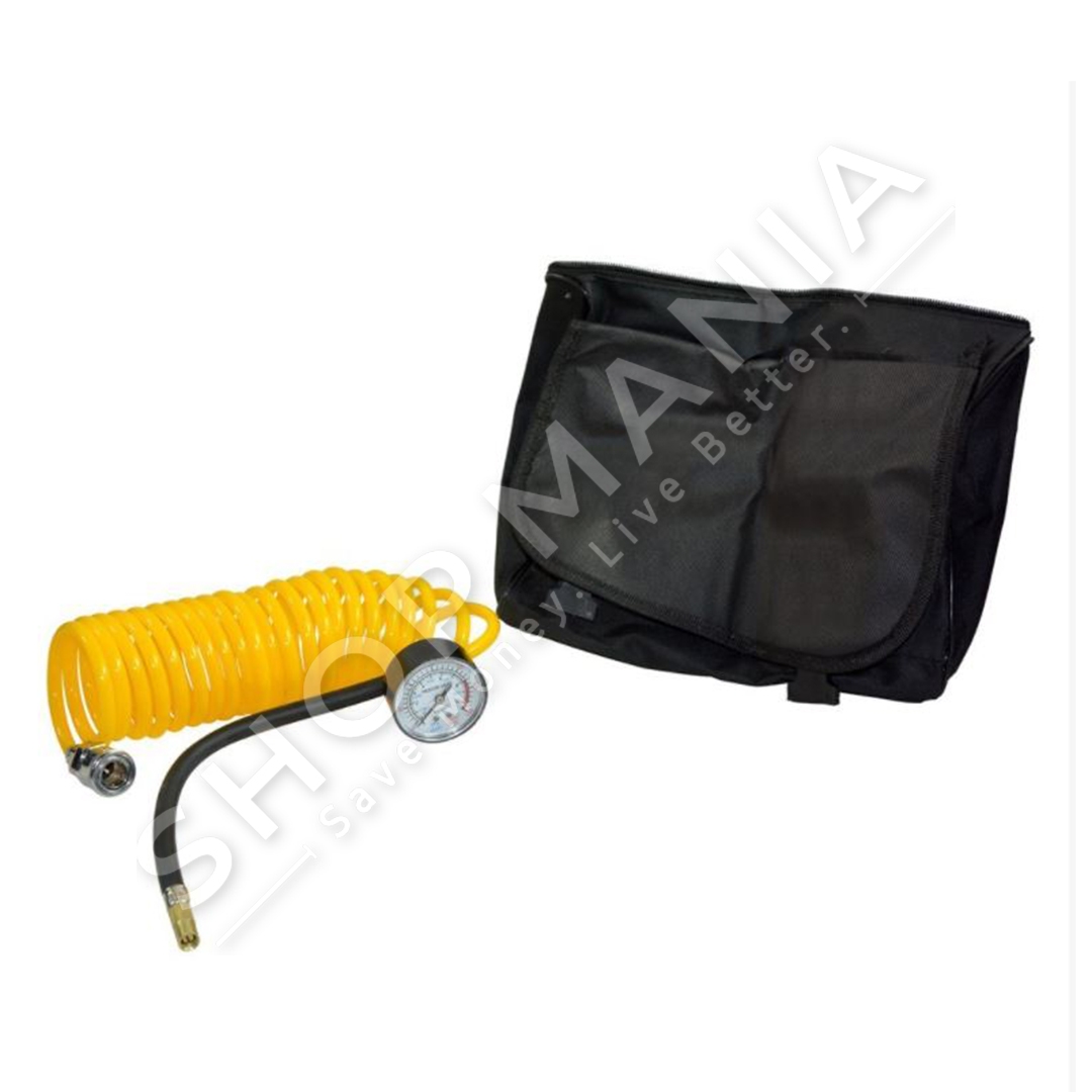 Kompresori furnizohet me energji 12 V dhe eshte i pajisur me mates presioni per te kontrolluar presionin e deshiruar.