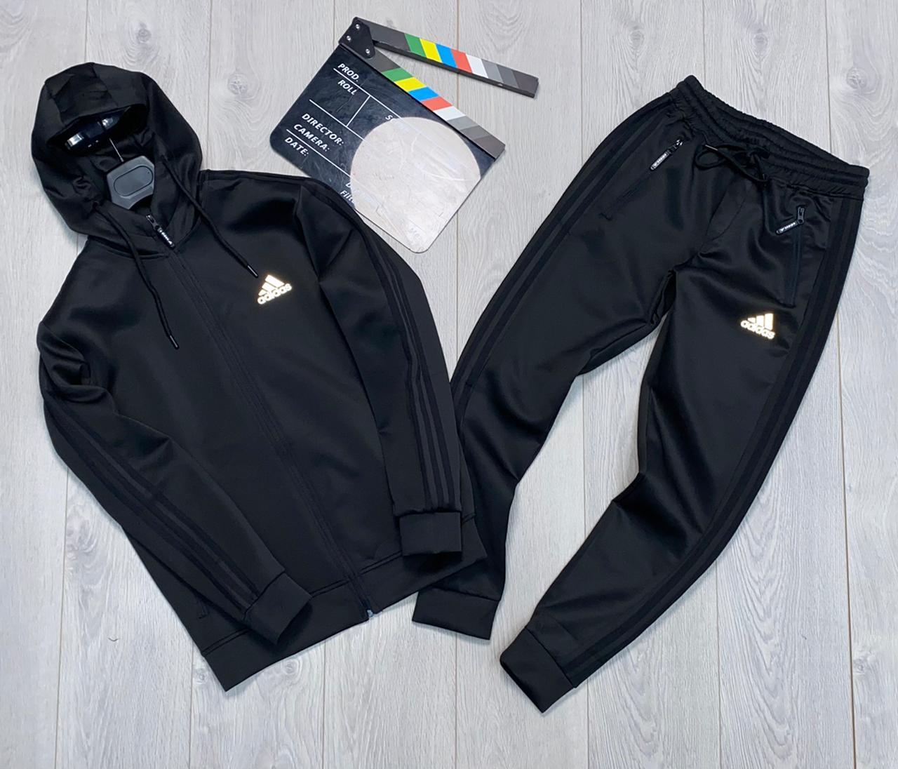 Kostum sportiv me bluze me zinxhir, kapuc dhe tuta.