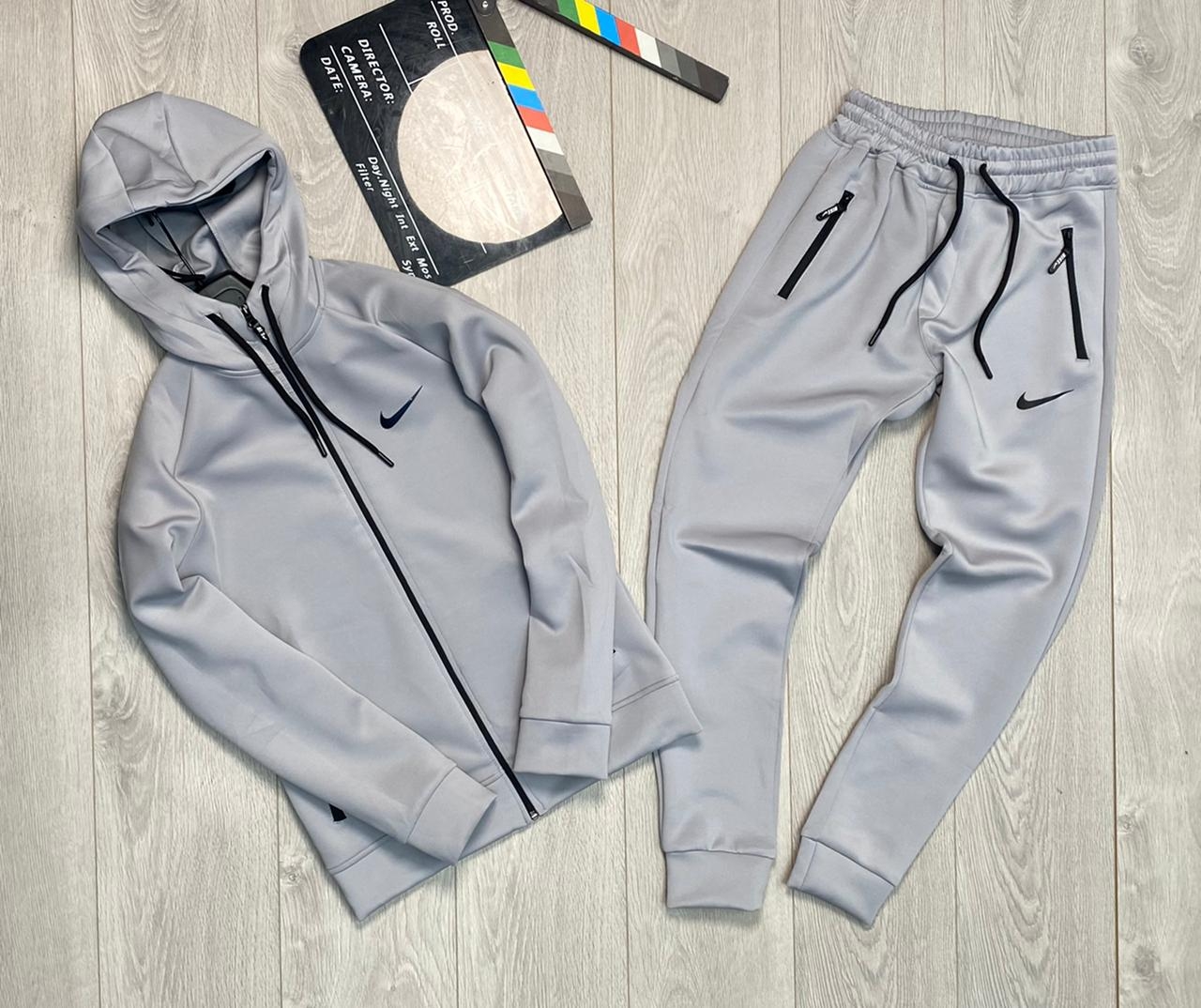 Kostum sportiv me bluze me zinxhir, kapuc dhe tuta.
