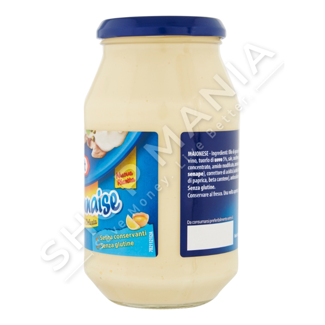 Perberesit:Vaj luledielli 70%, Ujëvara, Uthull vere, E verdha veze 5 %, kripë, Sheqer, Lëng limoni i koncentruar, Niseshte e modifikuar, Aromë natyrale (përmban mustardë ), Rregullator i aciditetit (acidi laktik), Ngjyra (ekstrakt i paprikës, beta karoten), Antioksidant (disodium kalcium EDTA)Vellimi: 490 ML