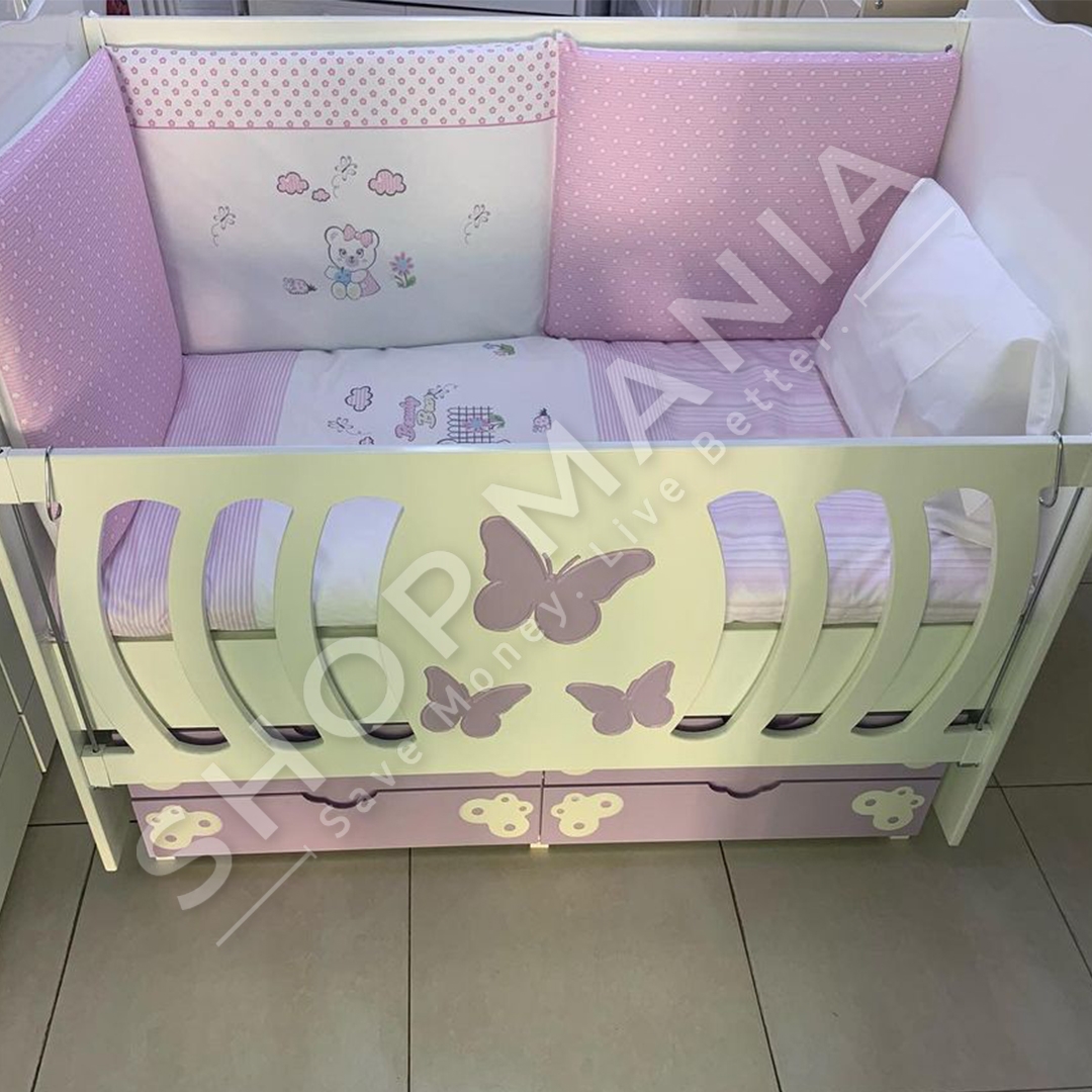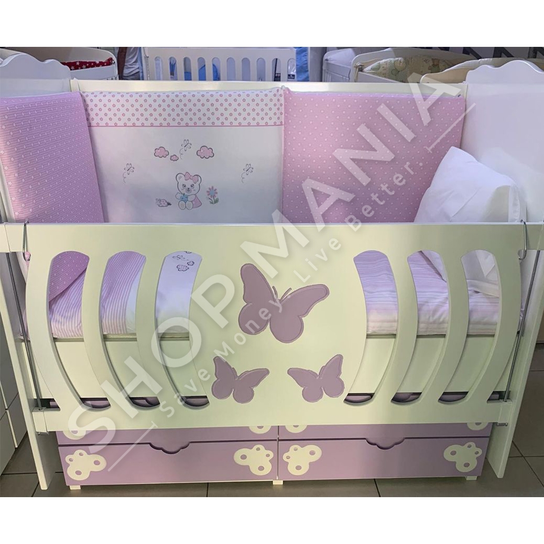 Krevat per femije me dizajn Flutur, krahe anesore dhe sirtare ne pjesen e poshtme.