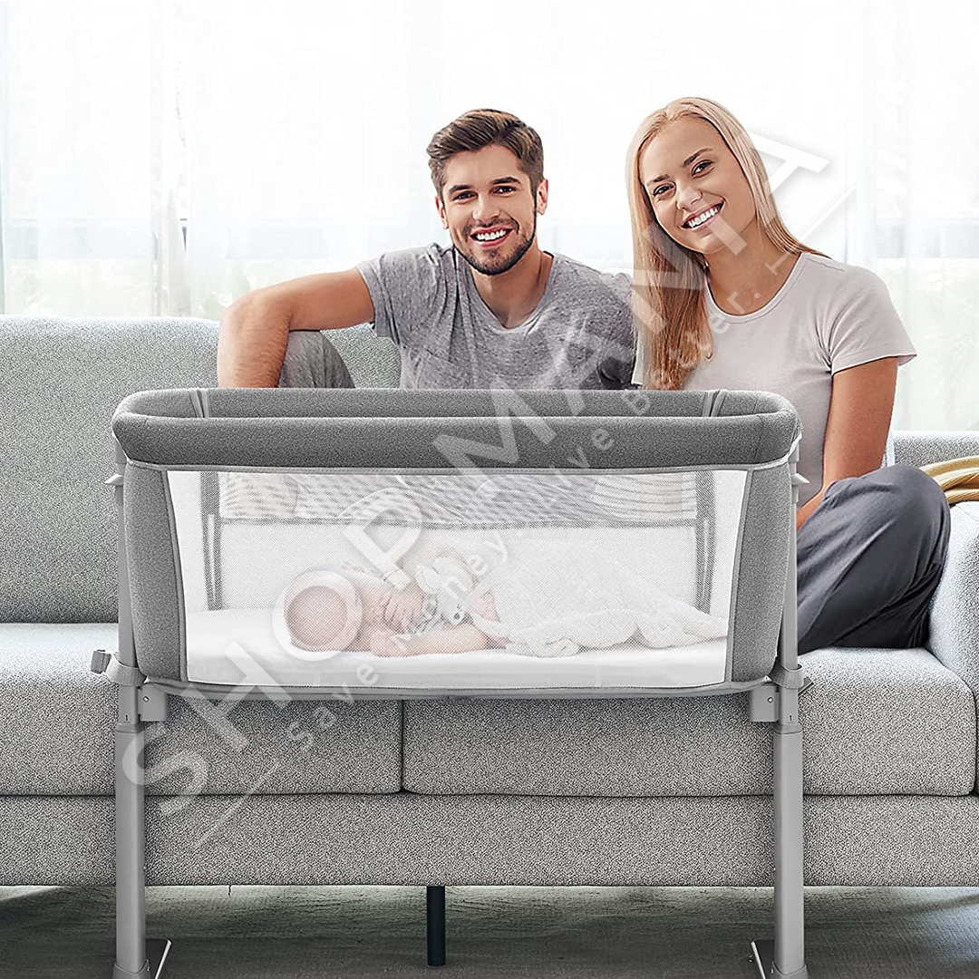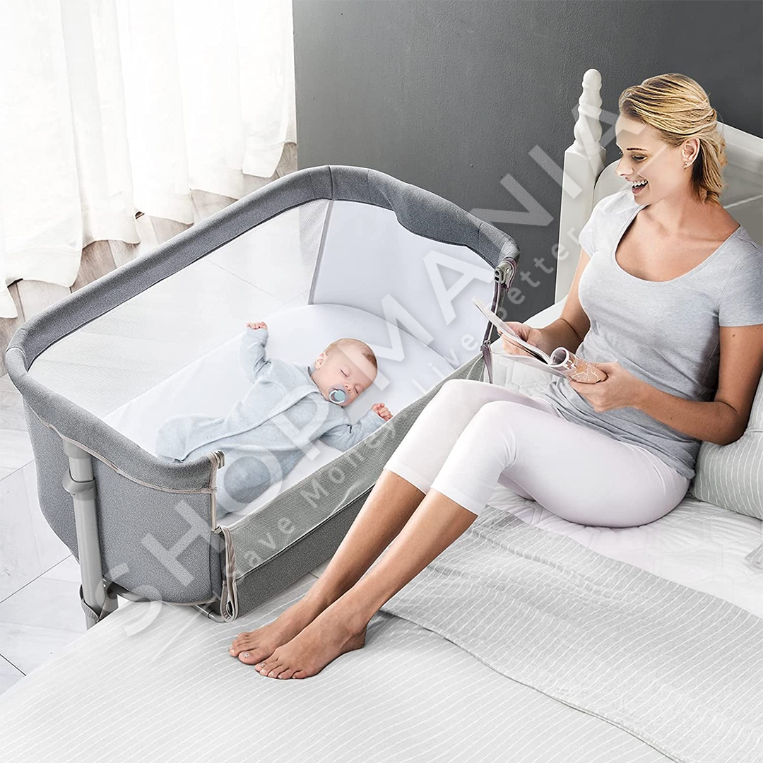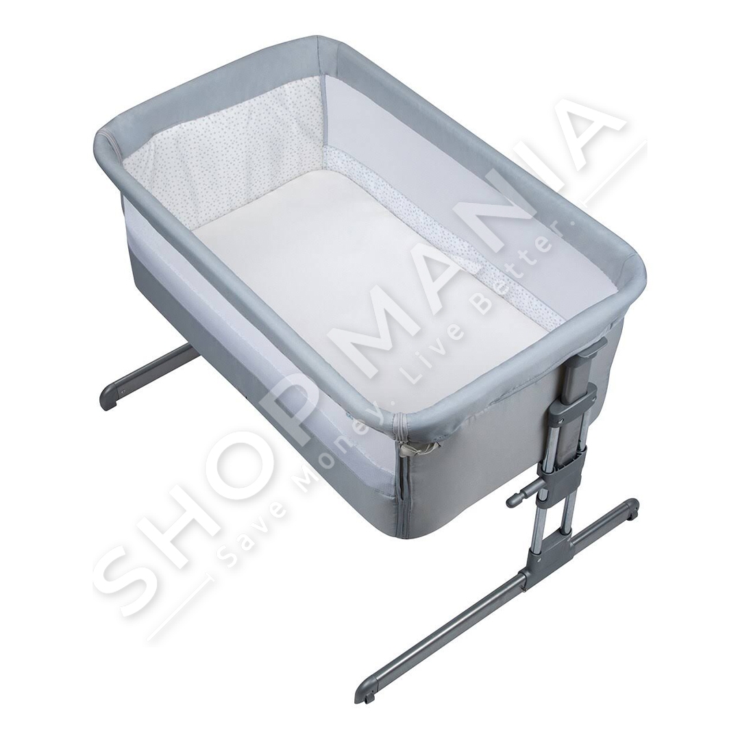 Specifikat:Me skelet metalikMe dyshek te bute 100% pambukMe rrota per zhvendosje te lehteMe lartesi te rregullueshmeMe hapje anesore, per te qene me prane me krevatin e prinderveMe rripa per lidhje me krevatin e prinderve/ I pershtatshem me te gjitha llojet e krevateve per shkak te rripave shteseNgjyra: Gri
