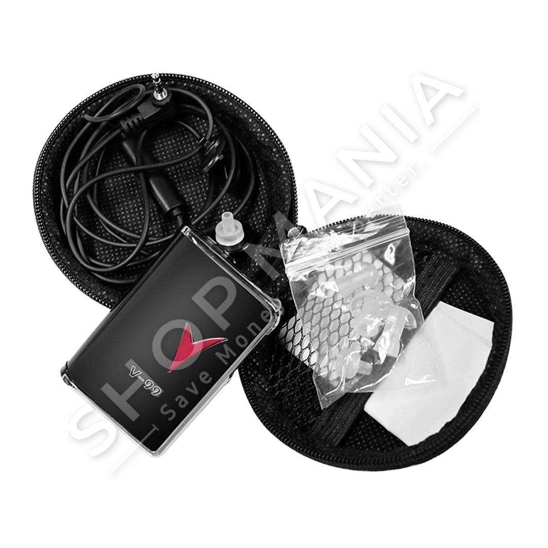 Kufje V99 me nje kuti mbajtese praktike dhe e vogel per t'u mbajtur kudo.
