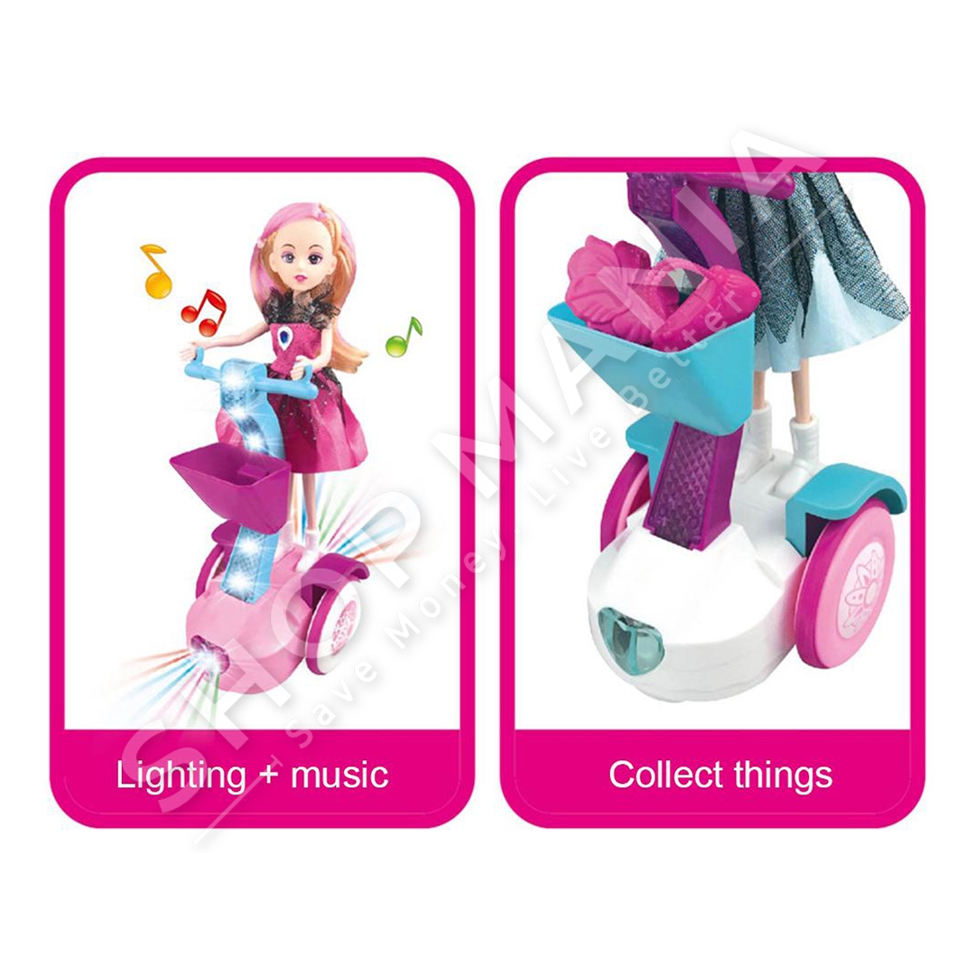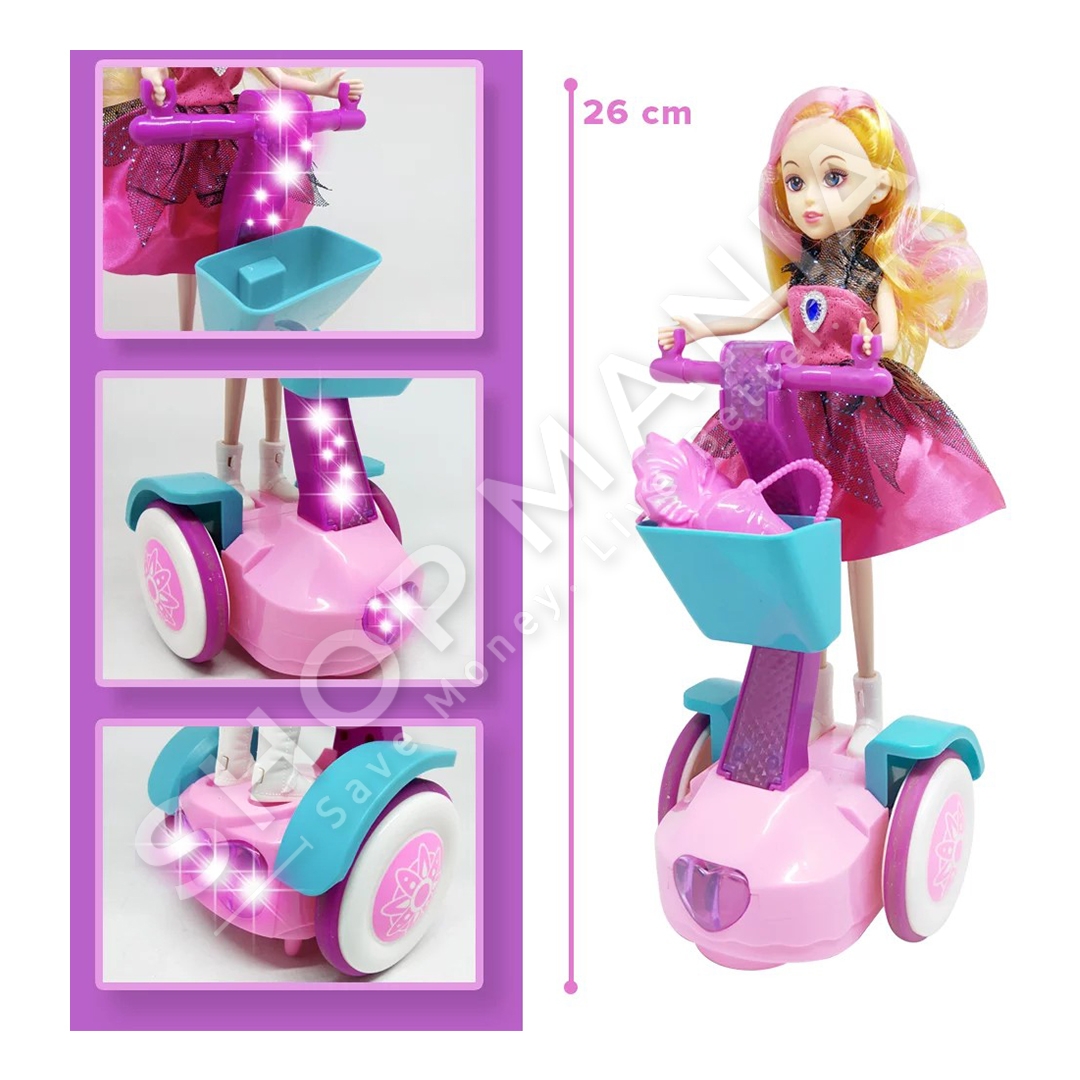 Per te gjitha vogelushet qe pelqejne kukullat dhe lodrat me kukulla ne sjellim kukullen me bicikleten elektrike "Electric Balance Car Doll Set Gift Box Children Lighted Music Play Toys".