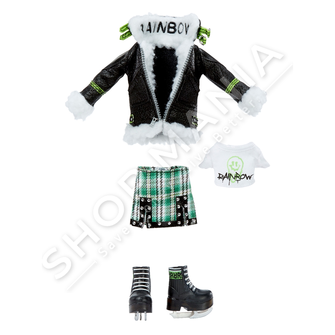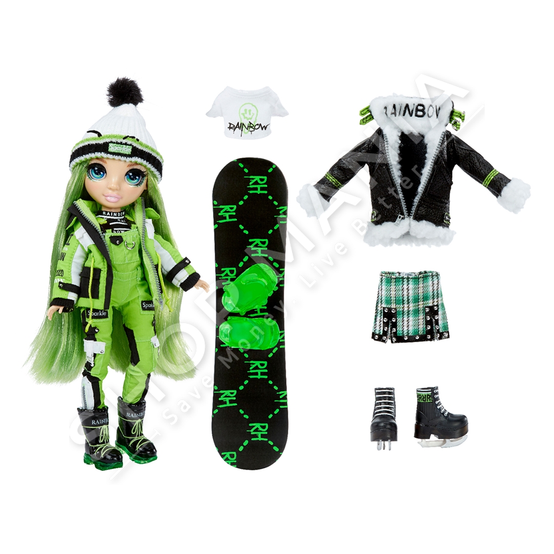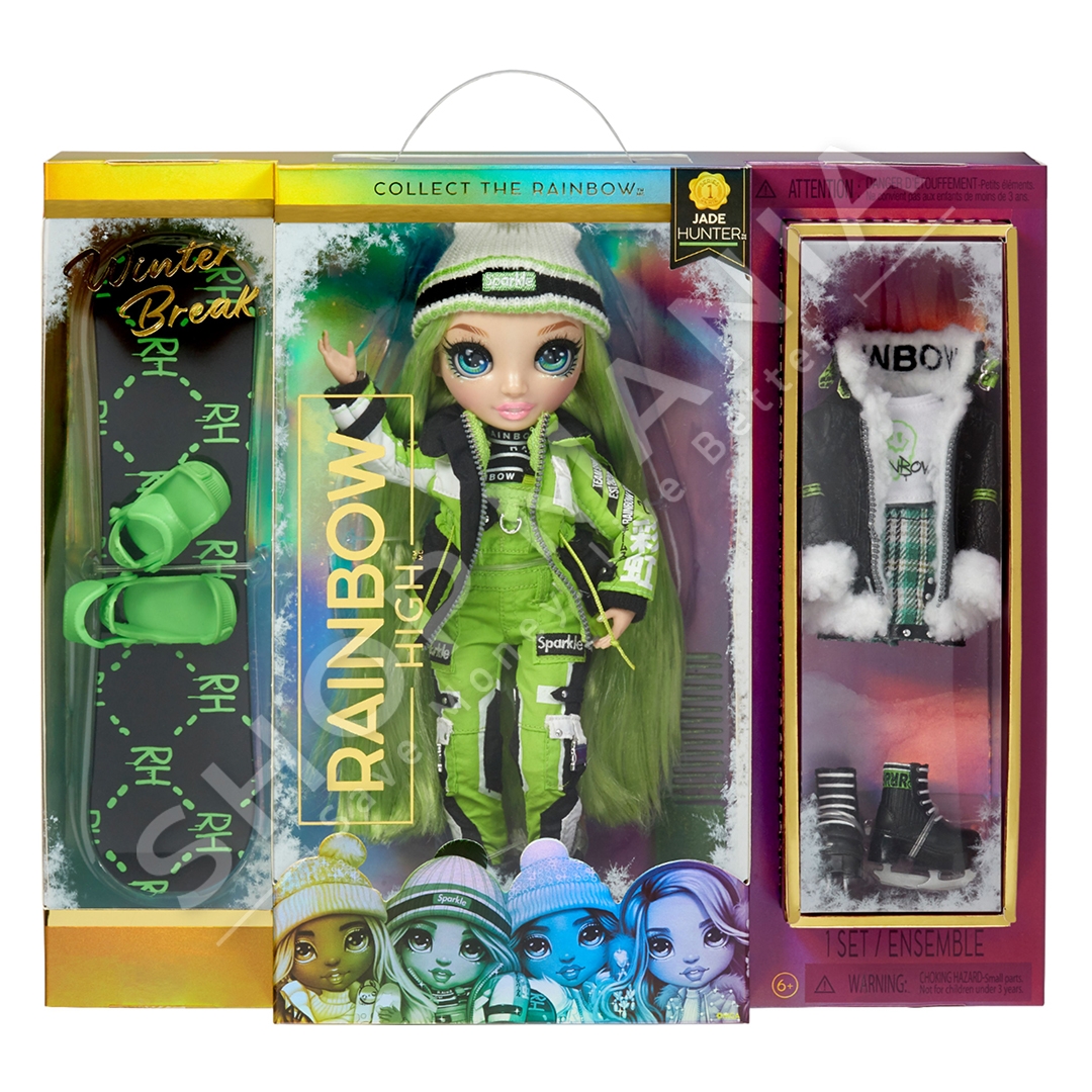 Kukulla Rainbow High Fashion Winter Break Dolls Asst 2 -3 me dizajn unik veshjeje, e veshur me ngjyre te gjelber nga koka te kembet. Ka tipare te mrekullueshme, qerpike te gjate dhe floke te bukur e te krehur. Vjen me 2 veshje te plota kukullash, 2 pale kepuce dhe aksesore si mbulese veshesh, cizme bore dhe ski. Mosha: +6 vjec