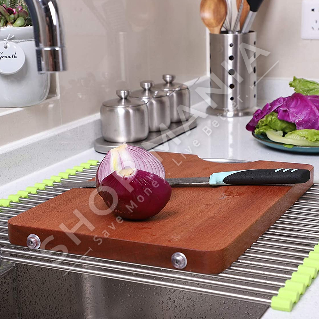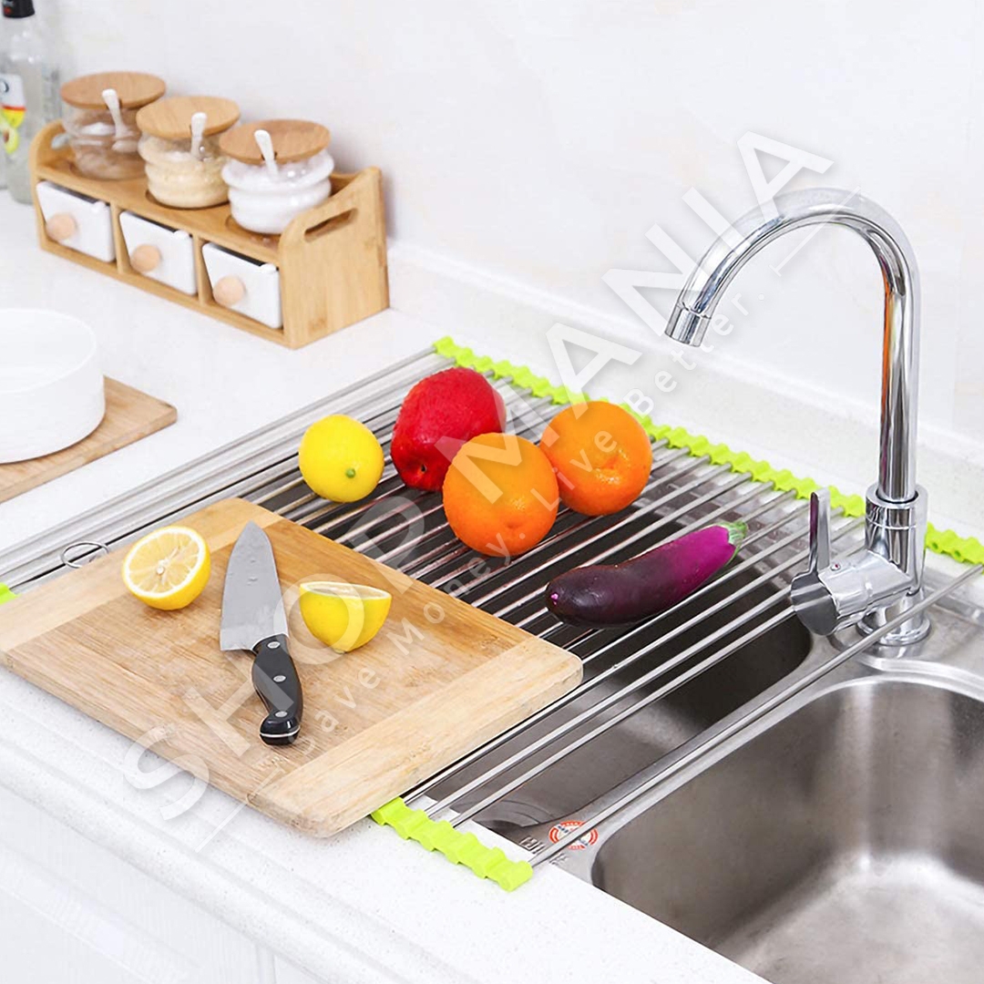 Përshkrimi:Shtojini prakticitet punes tuaj ne kuzhine me kulluesen metalike per lavamanin.E pajisur me 15 shufra per te kulluar frutat/perimet dhe enet.Specifikat: