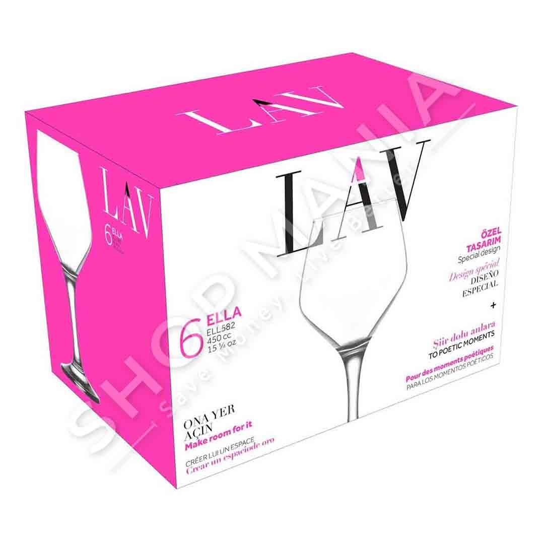 Përshkrimi:Set 6 gotash prej qelqi per vere te kuqe nga LAV.