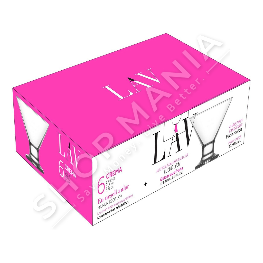Përshkrimi:Sherbejeni akulloren ne kupe prej qelqi, me kupen e pershtatshme nga LAV, qe ka kapacitet 165 ML.Akullorja ruhet e fresket dhe shijon me mire!
