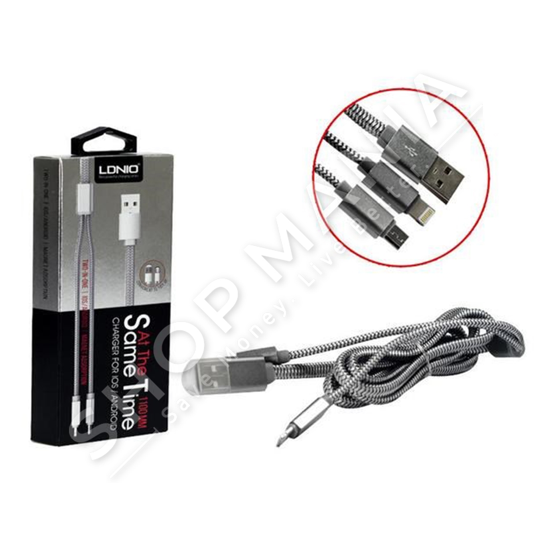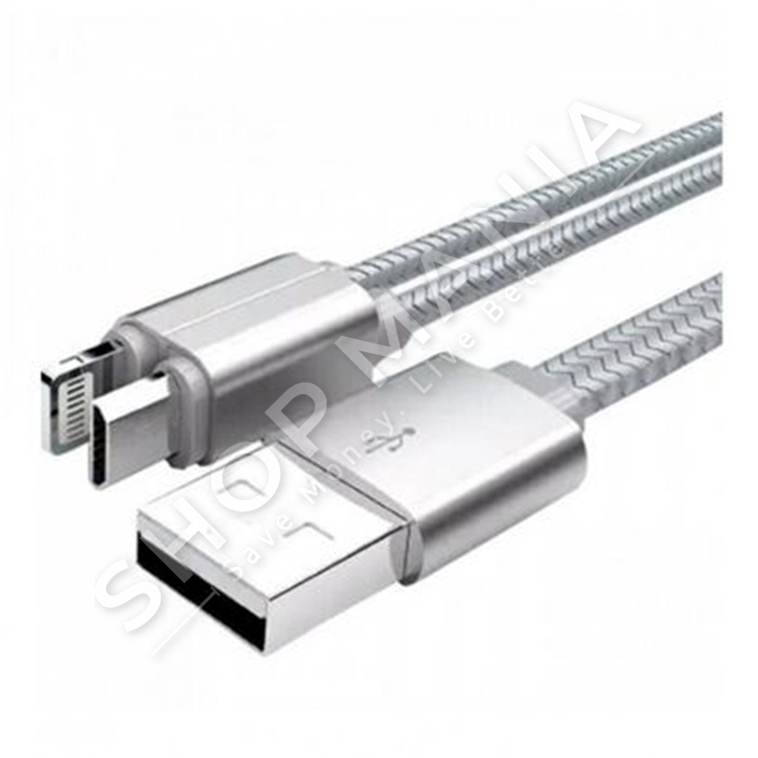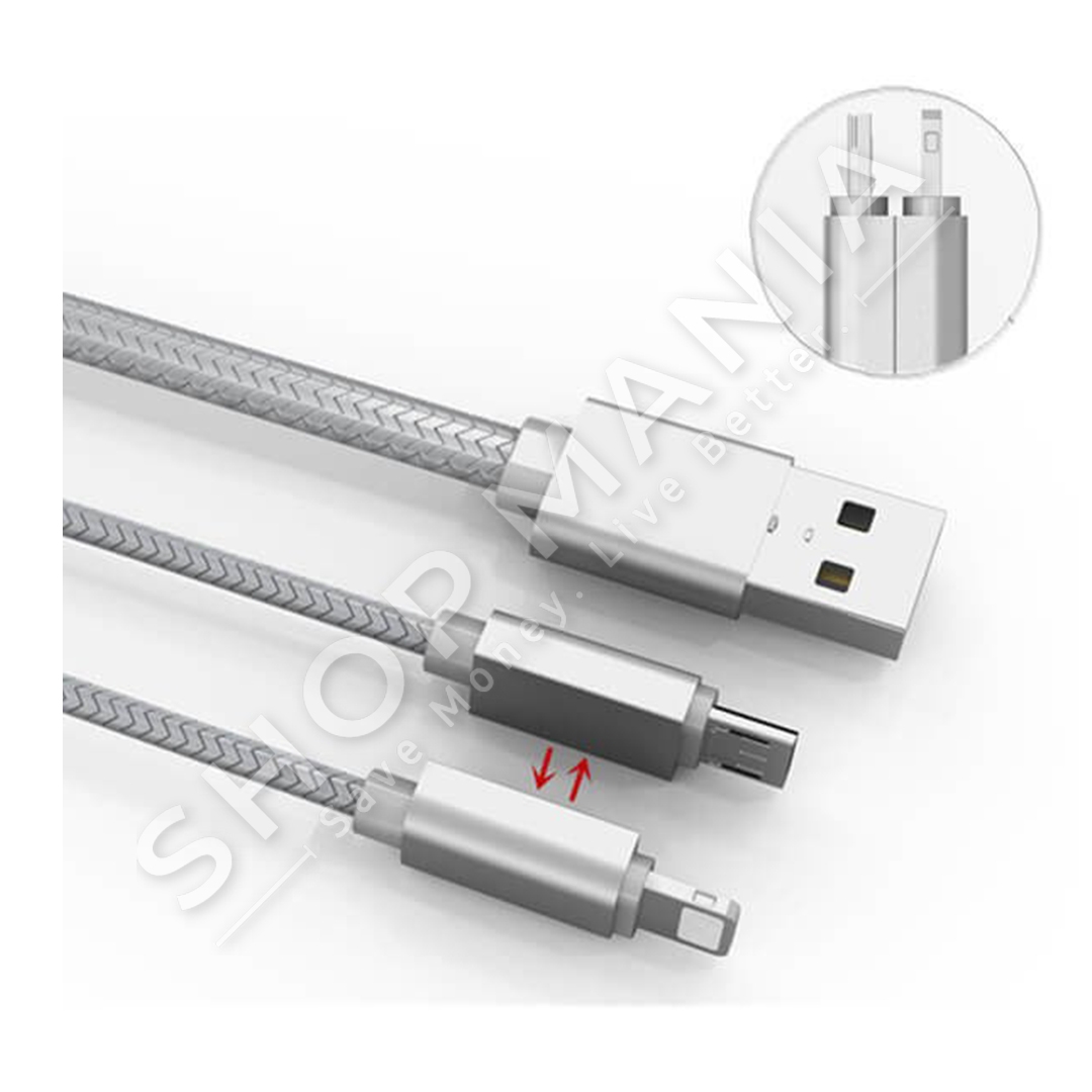 Fishe e dobishme USB me 1 lidhje mikro USB dhe 1 lidhje Lightning per te karikuar ose sinkronizuar 2 pajisje me kompjuterin ose laptopin tuaj ne te njejten kohe.