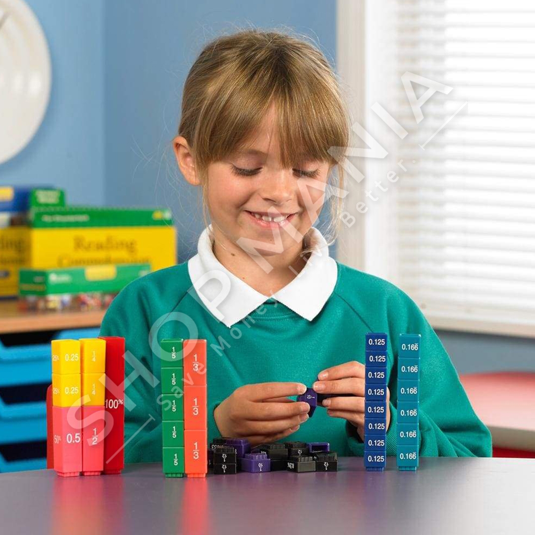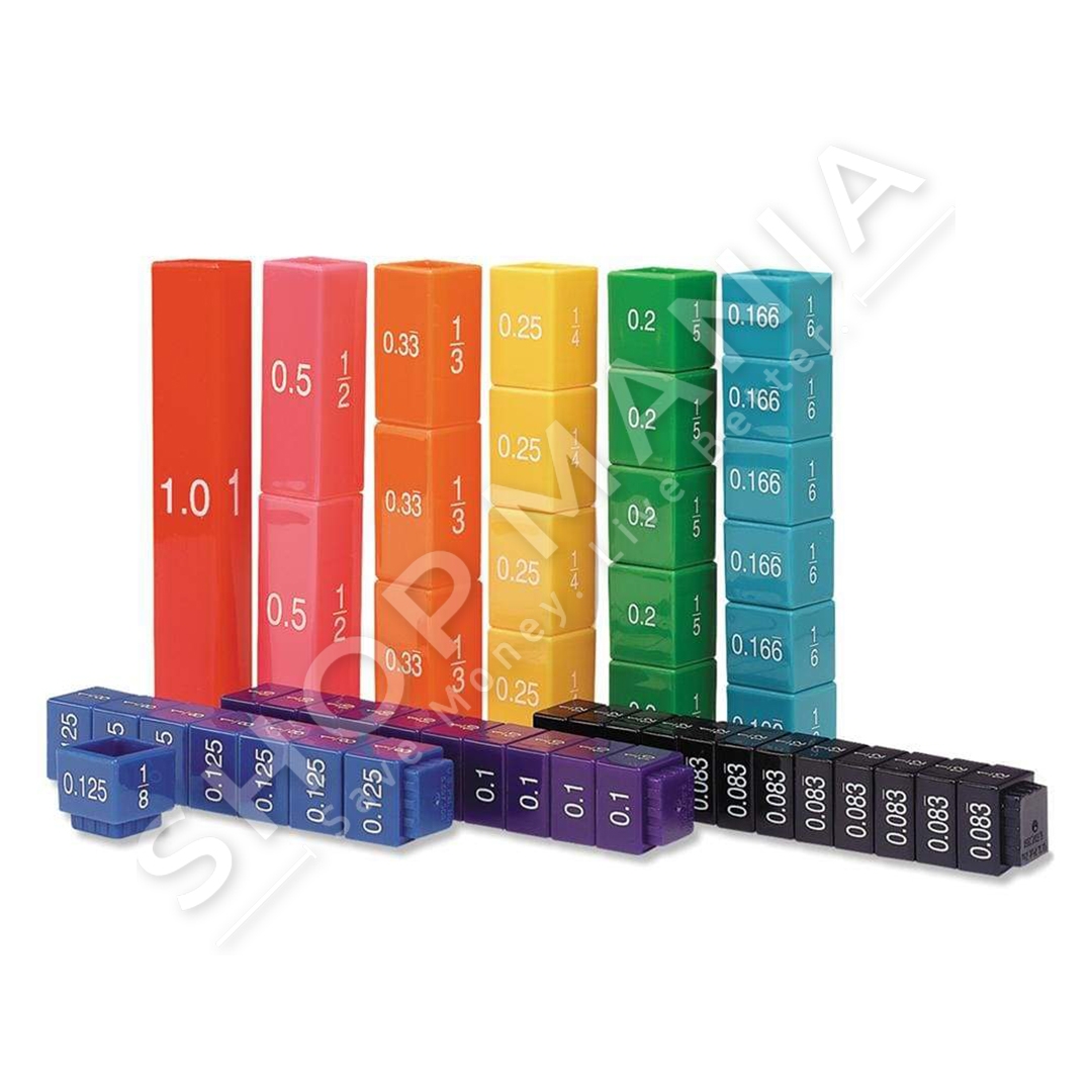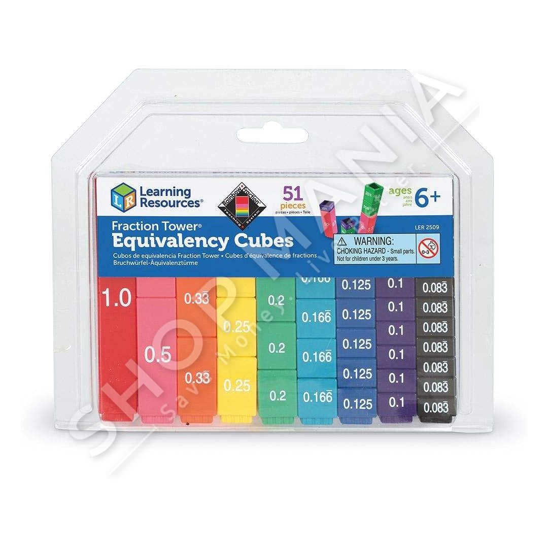 Fraction Tower Equivalency Cube eshte nje loje me 51 pjese me thyesa te ndryshme. Te gjitha pjeset me ngjyre te njejte ilustrojne te njejten thyese psh: E kuqe=1, Roze=1/2, Portokalli=0.33, E verdhe=1/4, Jeshile=0.2, Bojeqielli=0.166, Blu=0.125, Lejla=0.1 dhe E zeze=0.083. E pershtatshme per te luajtur femijet mbi 6 vjec. Mosha: +6 vjec