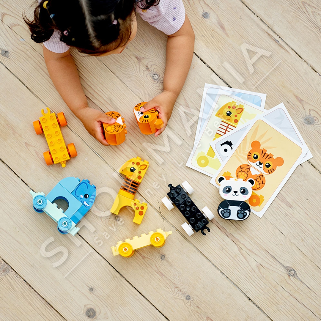 Lego Duplo Animal Train eshte ndertuese Lego per te gjithe femijet qe pelqejne kafshet me 15 pjese. Ka te beje me ndertimin e kafsheve si: elefanti, tigri, xhirafa dhe panda. Pasi formohen, kafshet mund te lidhen njera pas tjetres ne forme treni dhe keshtu loja behet me interesante. Teper e lehte per te formuar figurat e kafsheve dhe e pershtatshme per femijet mbi 1 vjec e gjysme. Mosha: +1 vjec e gjysme