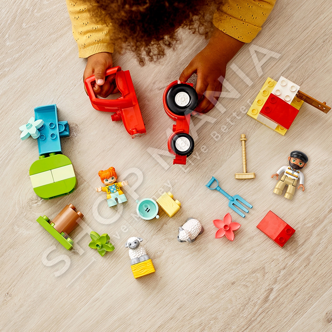 Lego Duplo Farm Tractor & Animal Care eshte ndertuese Lego per femijet parashkollore qe pelqejne jeten ne ferme dhe kujdesjen ndaj kafsheve. Seti perfshin nje traktor qe terheq nje karroce plot me mjete pune, 2 dele te lezetshme dhe figura te fermerve dhe femijeve. E lehte per t'u ndertuar pasi ka vetem 27 pjese dhe zhvillon te femijet aftesite emocionale dhe te kujdesjes ndaj kafsheve. Mosha: +2 vjec
