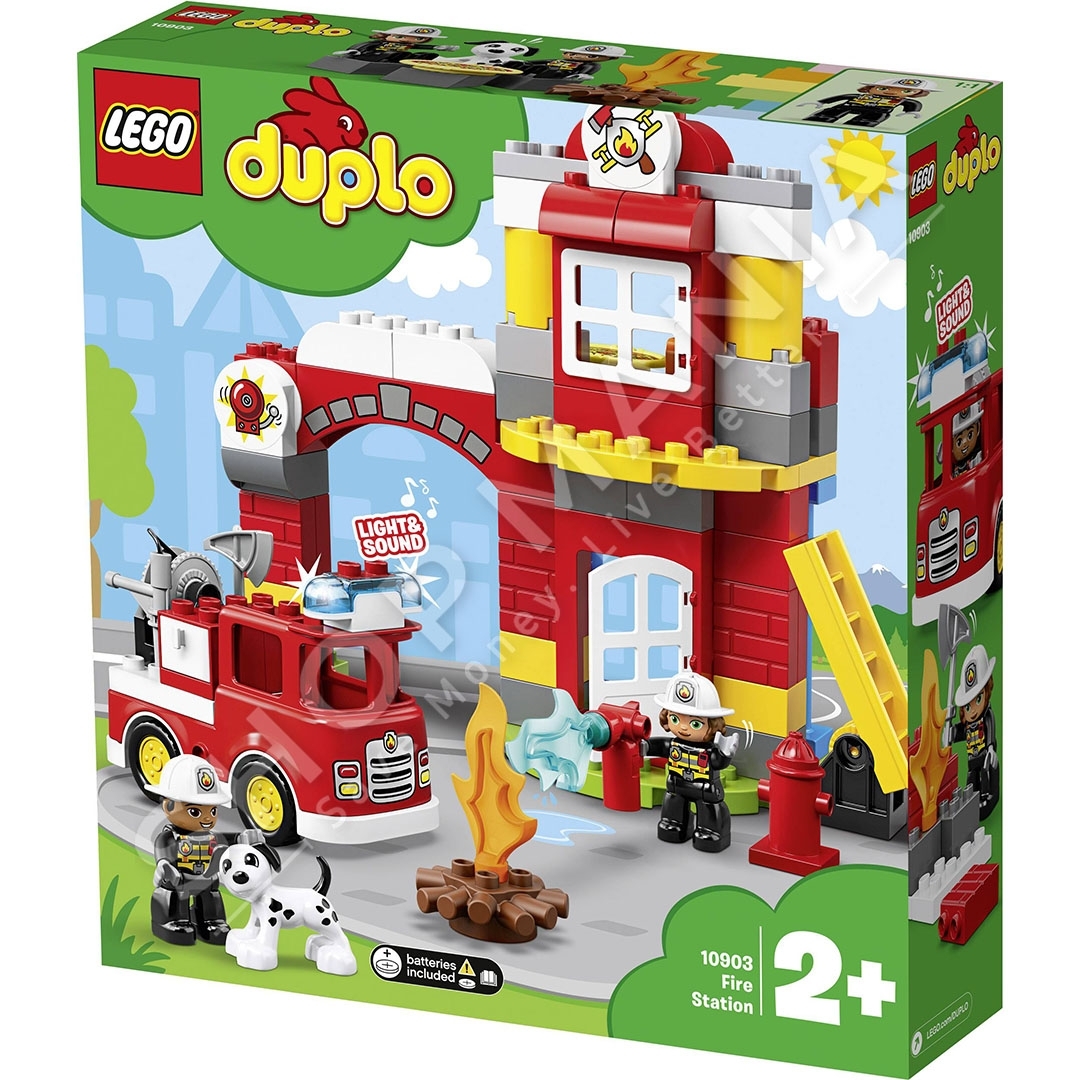 Lego Duplo Fire Station eshte ndertuese Lego ideale per femijet mbi 2 vjec. Seti perfshin 2 figura te zjarrefikesve dhe nje figure qeni dhe ka 76 pjese. Perfshihet gjithashtu stacion per fikjen e zjarrit me nje kulle dhe nje makine zjarrefikse me drita dhe me zhurme sirene. Te aksesoret perfshihen: nje shkalle, zorre, fikse zjarri, sepate dhe zjarr qe ndizet jashte. Stacioni per fikjen e zjarrit ka permasat 26x25x12 cm, ndersa makina zjarrefikse ka permasat 10x14x7 cm. Mosha: +2 vjec
