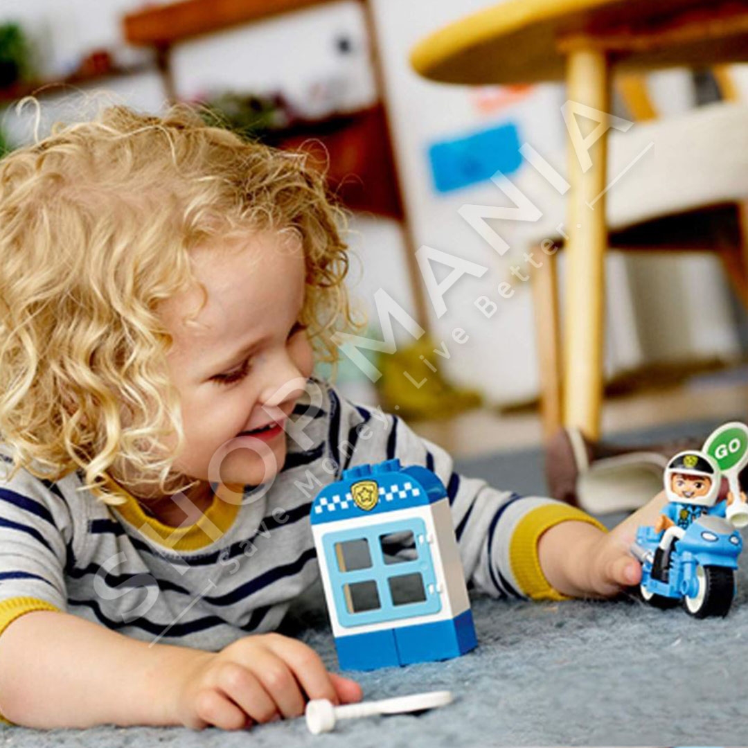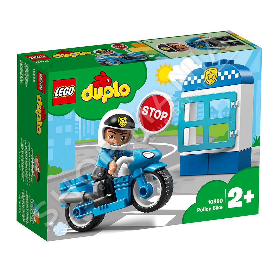 Lego Duplo Police Bike eshte ndertuese Lego ideale per femijet mbi 2 vjec. Me 8 pjeset e saj mund te formoni nje motociklete policie dhe nje kioske policie. Permasat e motocikletes jane 5x9x4 cm, ndersa permasat e kioskes jane 10x6x3 cm. Mosha: +2 vjec