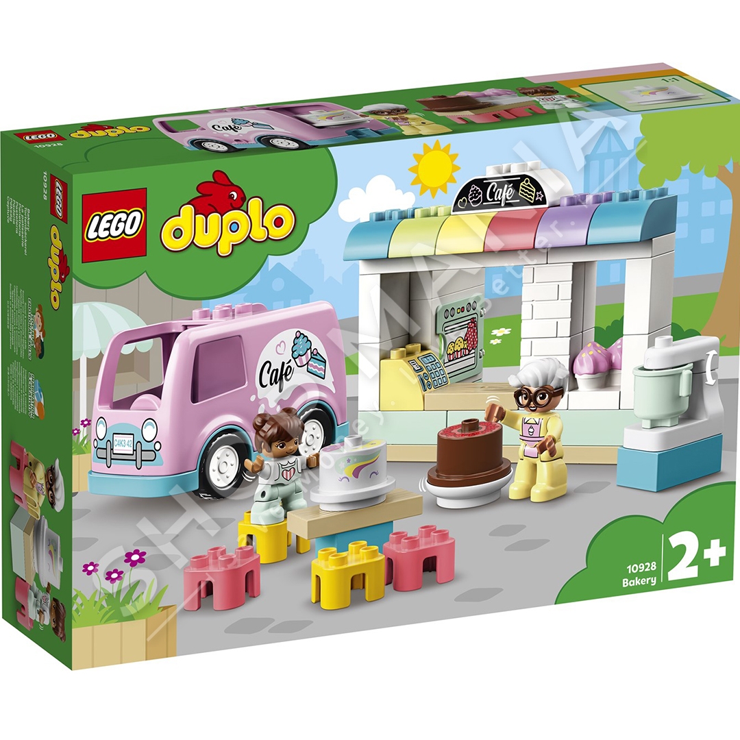 Lego Duplo Town Bakery eshte nje ndertuese Lego per te gjitha vajzat dhe djemte mbi 2 vjec. Me 46 pjeset e saj mund te formoni furren, makinen transportuese te kafes dhe embelsirave dhe kafenene. Permasat e nderteses kryesore te kafenese jane 15x19x11 cm. Jane te perfshira ne paketim dhe figurat e bukepjekesit, klientit dhe aksesoret si torta, cupcake, makine perzierese, karrige dhe tavoline. Mosha: +2 vjec