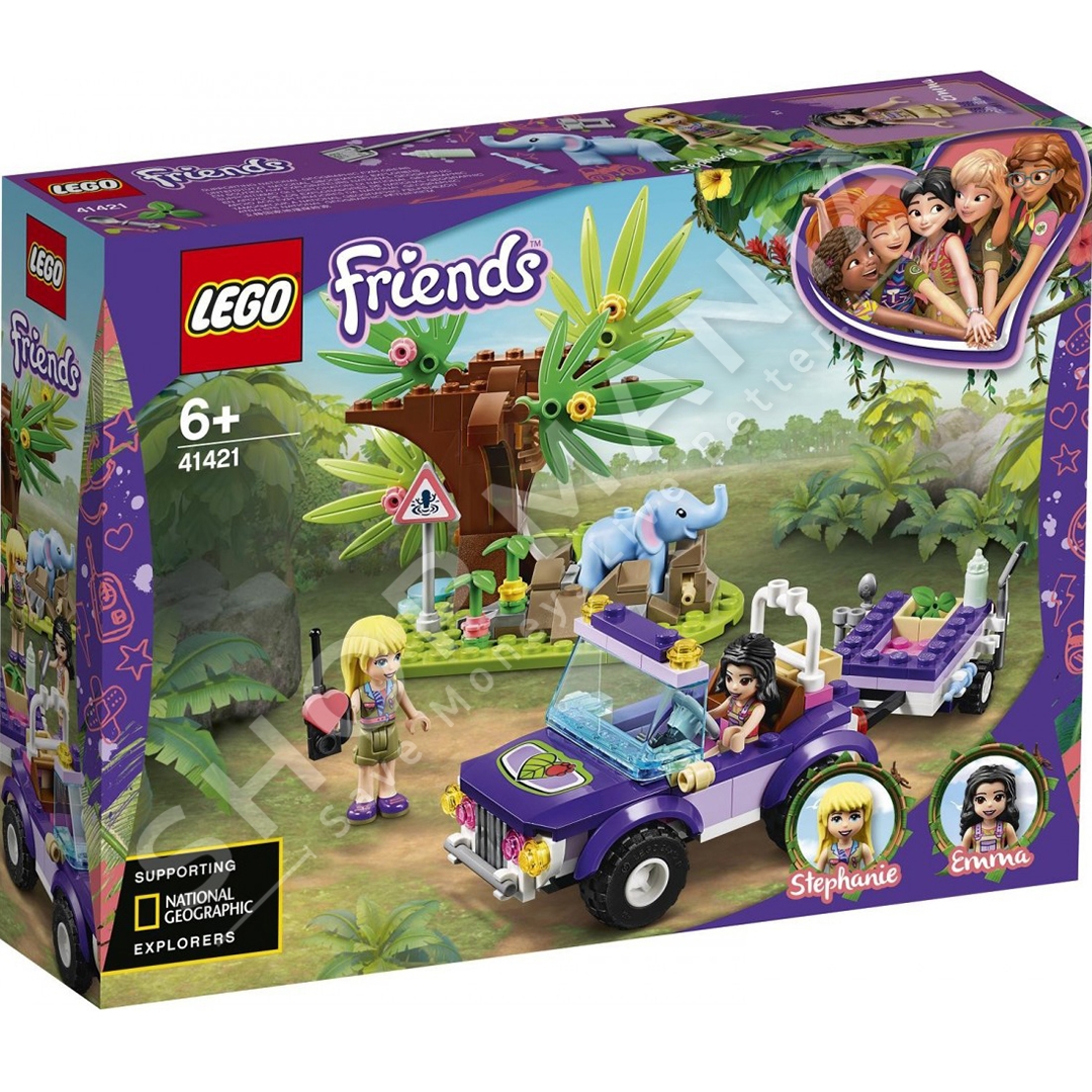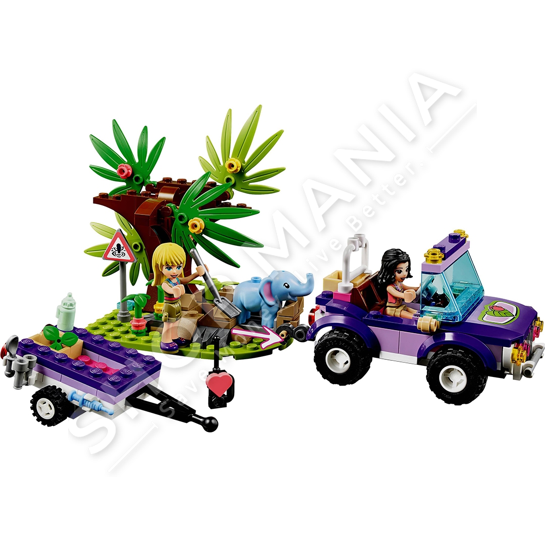 Lego Friends Baby Elephant Jungle Rescue e pershtatshme per te luajtur femijet mbi 6 vjec dhe me 203 pjese perberese. Perfshin 2 figura mini kukullash: Stephanie dhe Emma, te cilat ndodhen ne xhungel me makinen e tyre. Femijet luajne dhe bejne si heronj per te shpetuar elefantin e vogel i cili ndodhet ne rrezik. Mosha: +6 vjec