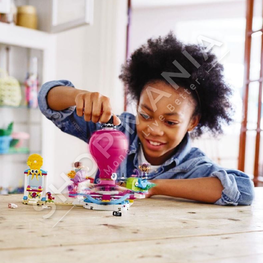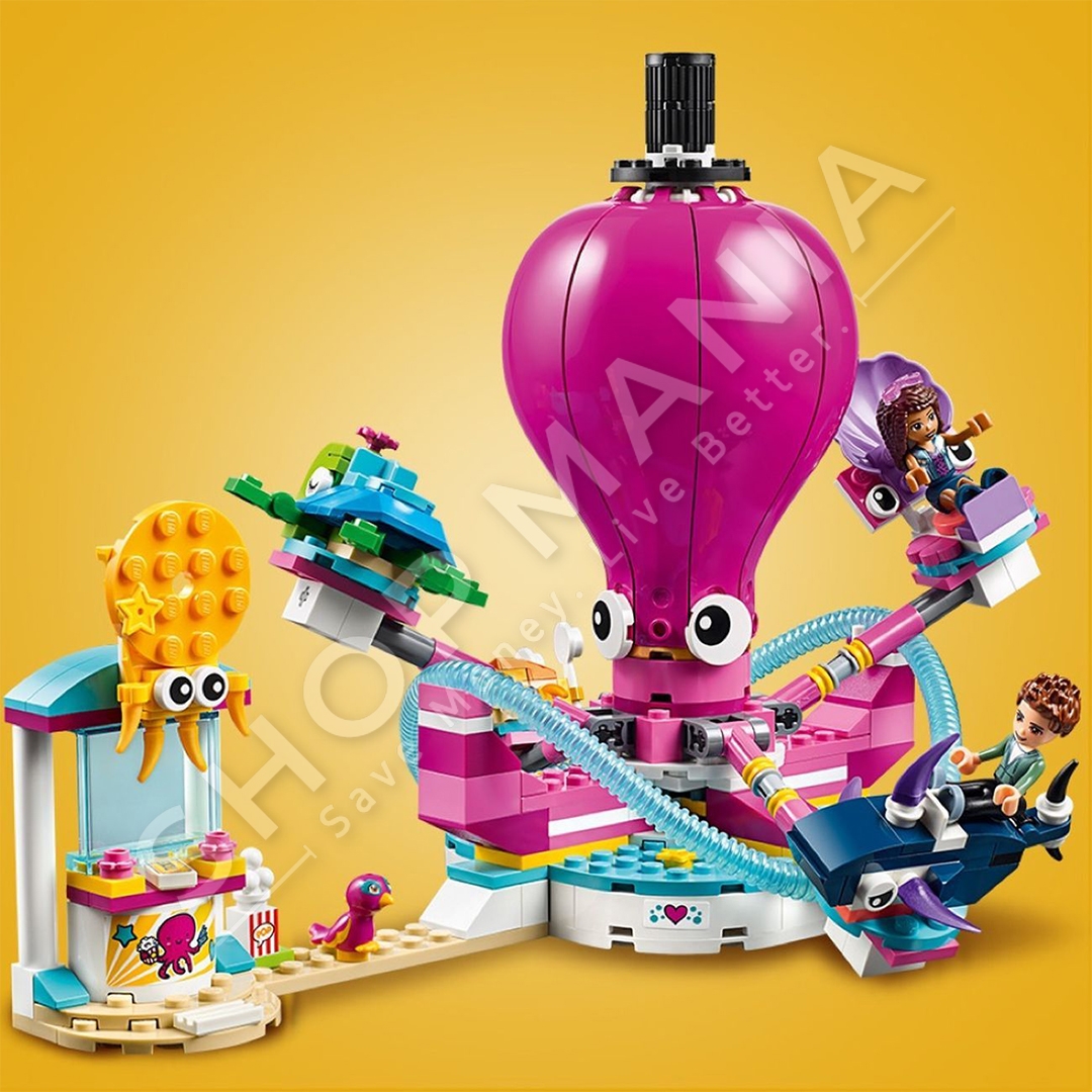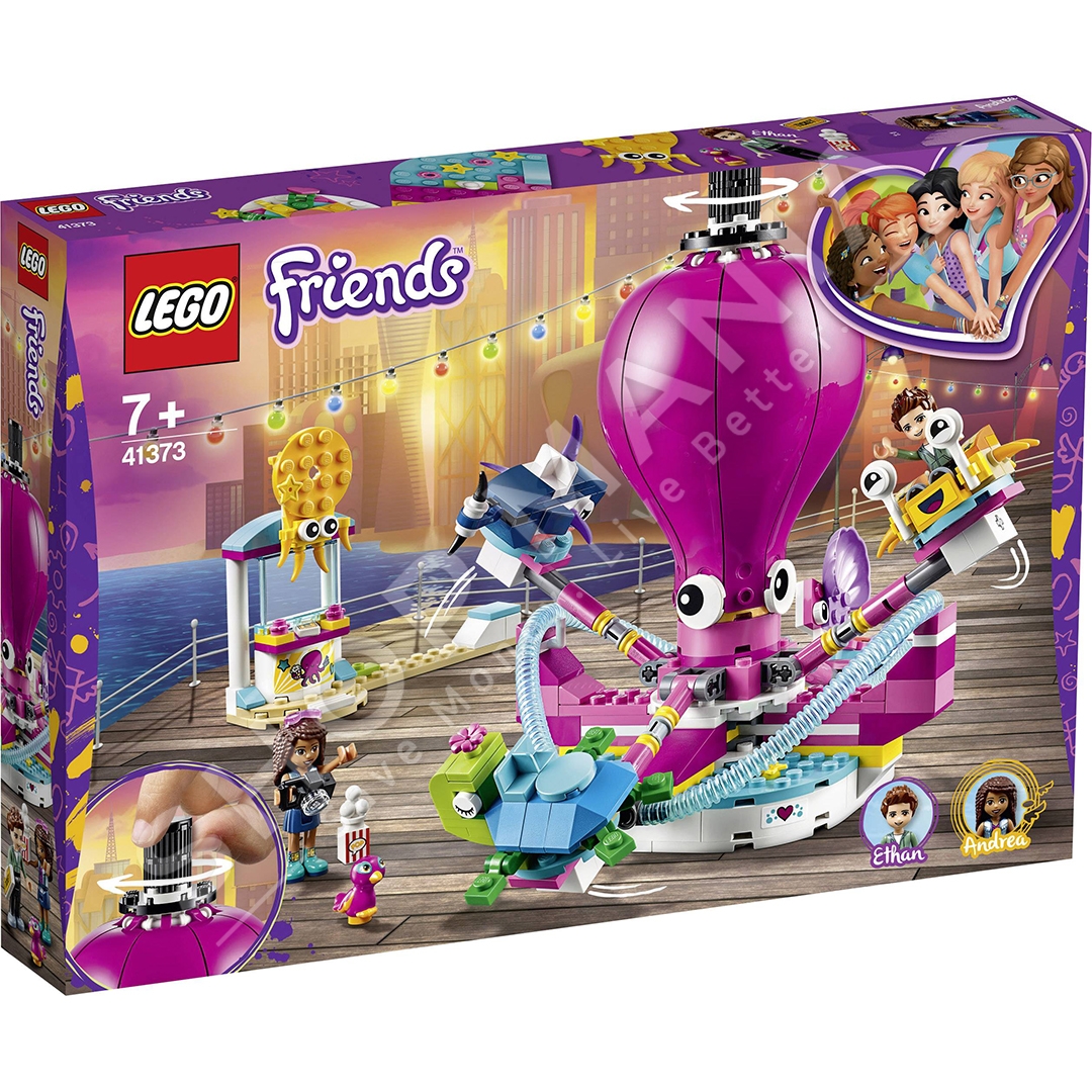 Lego Friends Funny Octopus Ride, formuese e pershtatshme per femijet mbi 7 vjec dhe me 324 pjese formuese. Perfshin trupin e nje oktapodi dhe ne fund te tentakulave te tij gjenden 4 makine ne forme krijesash te lezetshme deti. Duke kthyer kapelen e siperme te oktapodit, makinat fluturojne lart e poshte dhe rrotullohen majtas e djathtas. Perfshihet gjithashtu nje stende per shitjen e biletave te karnavaleve qe shet gjithashtu dhe kokoshka. Mosha: +7 vjec