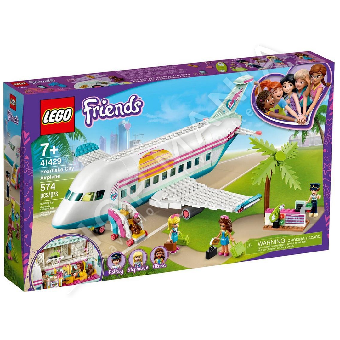 Lego Friends Heartlake City Airplane, ideale per te luajtur femijet mbi 7 vjec dhe me 574 pjese perberese. Me nje aeroplan loder, me kabine drejtuese, me bagazhe dore, dhe me nje karroce qe transporton ushqimin gjate fluturimit. Me 3 figura mini kukullash qe punojne si stjuardesa. Mosha: +7 vjec