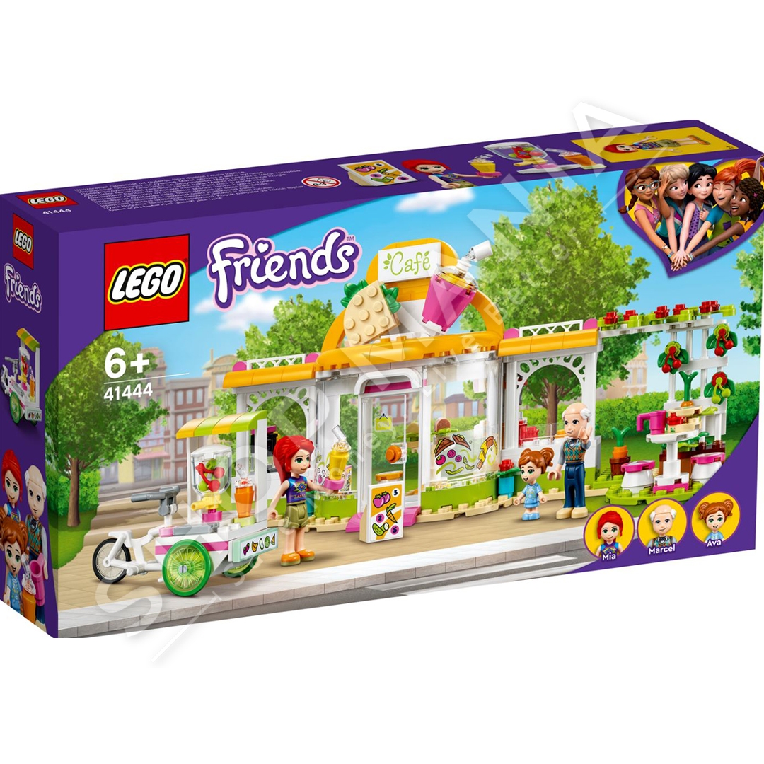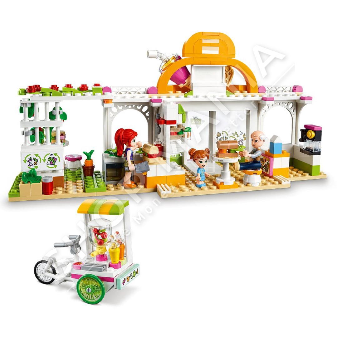 Lego Friends Heartlake City Organic Cafe vjen me nje kuzhine dhe kafene ne kopsht dhe nje biciklete per shperndarjen e lengjeve per djemte dhe vajzat qe vijne. Femijet do te argetohen pa fund duke pergatitur ushqime te shijshme, duke pjekur buke, duke bere kafe, lengje frutash etj. Permasat e kafenese jane 11x27x10 cm. Legoja ka 314 pjese perberese. Mosha: +6 vjec