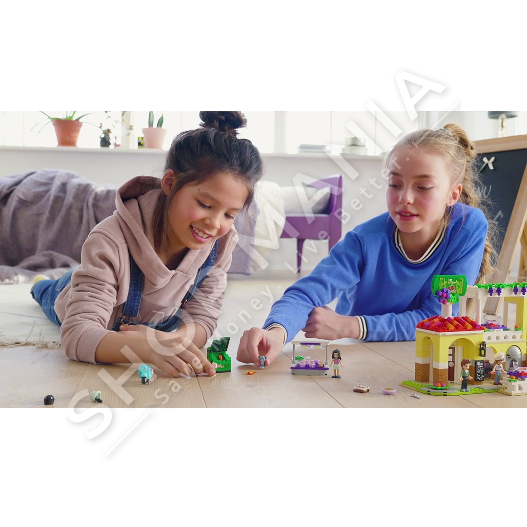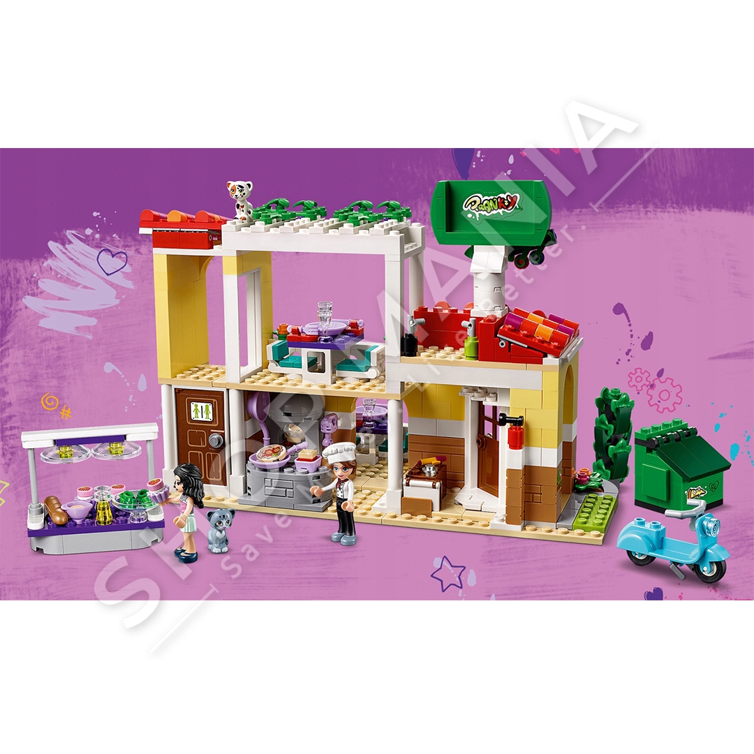 Lego Friends Heartlake City Restaurant, formuese e pershtatshme per te luajtur femijet mbi 6 vjec dhe me 624 pjese perberese. Perfshin nje restorant me zonen e recepsionit, nje bar dhe nje furre per pjekjen e picave. Femijet argetohen duke u perpjekur te luajne rolin e shefit te kuzhines dhe te pergatisin ushqime te shijshme ne restorant. Me 3 figura mini kukullash: Emma, Ethan, dhe shefi se bashku me 2 figura macesh. Mosha: +6 vjec