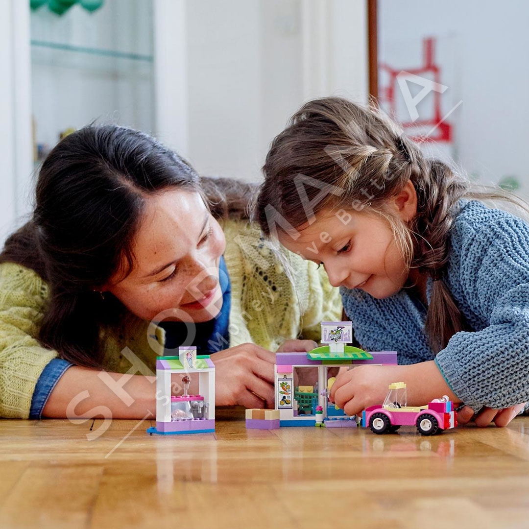 Lego Friends Heartlake City Supermarket, formuese ideale per femijet mbi 4 vjec dhe me 140 pjese perberese. Perfshin nje supermarket me te gjitha ushqimet e nevojshme. Pasi ke mbaruar pazarin mund te shijoni nje kafe ne barin afer supermarketit. Me 2 figura mini kukullash Stephanie dhe Olivia dhe me shume aksesore qe e bejne supermarketin si te ishte i vertete. Mosha: +4 vjec