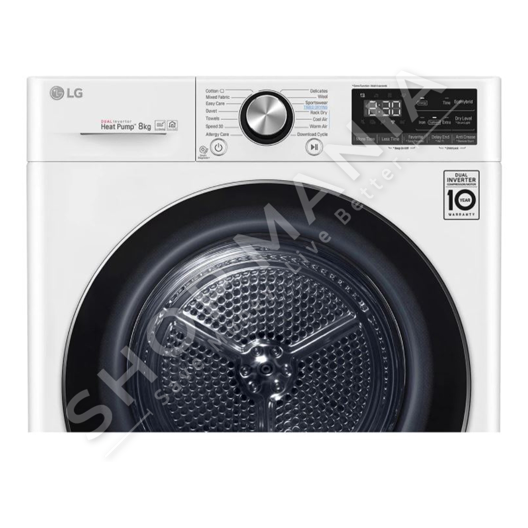 Me teknologjine e lidhjes inteligjente TWIN Care, me ane te te ciles tharesja merr informacione nga lavatricja LG nepermjet Wi-Fi per te vendosur automatikisht ciklin e tharjes me te pershtatshem per rrobat tuaja.