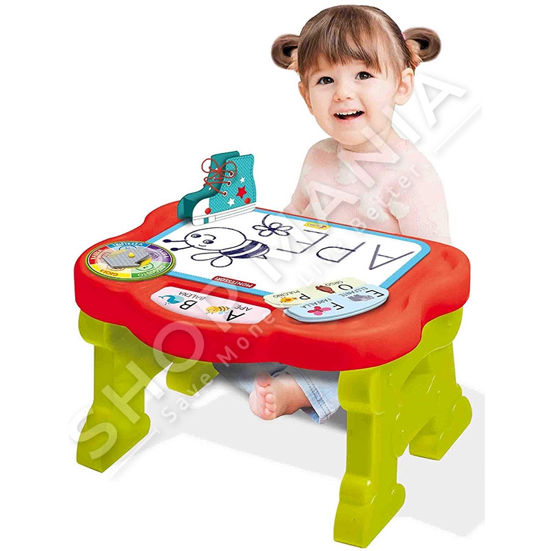 Ky set fantastik ndihmon femijet tuaj te mesojne numrat, shkronjat, alfabetin, ngjyrat, kohen, format, te lidhe kepucet, te shkruaje ne rere dhe nje sere aktivitetesh te tjera!