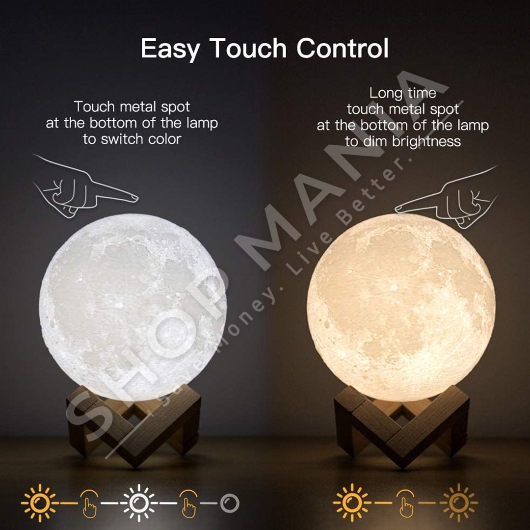 Llampa 3D "Moon" eshte e pershtatshme per dekorimin e dhomave te gjumit. Perdoret si llambe prane shtratit per te krijuar nje atmosfere te ngrohte dhe ka formen e henes. Bateria e saj eshte e karikueshme me USB, dhe mund te perdoret normalisht gjate karikimit. Materiali i llampes eshte ekologjik, jo PVC ose plastik. Mund te perdoret dhe gjate karikimit. Llampa eshte ngjyre blu kur karikohet dhe kur perdoret eshte ngjyre e ngrohte e verdhe ose e bardhe. Ka sensor prekjeje sensitiv, nuk ka nevoje ta prekni shume here qe te ndizet. Ka peshe te lehte dhe mund te transportohet kudo ku ju keni nevoje.