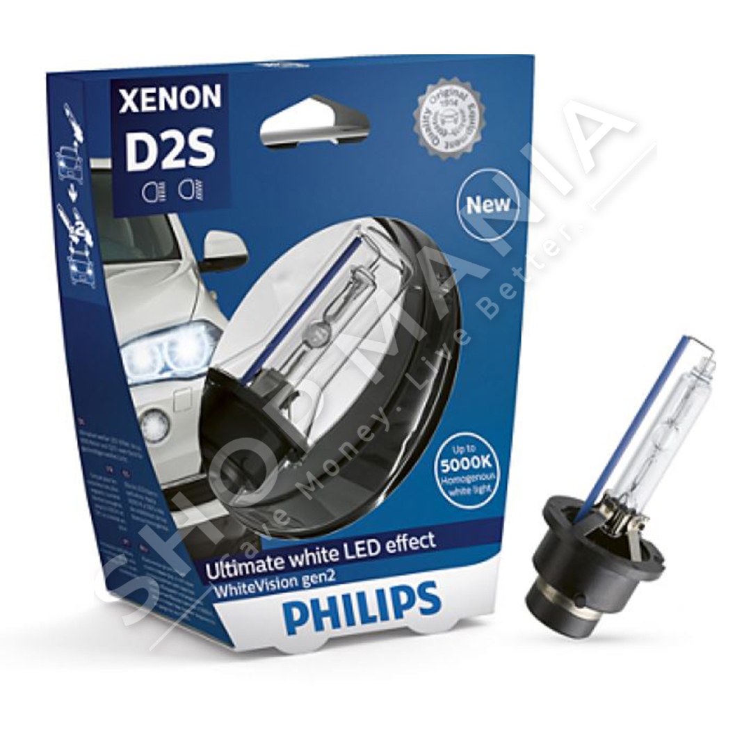 Llampa Xenon Philips D2S White Vision prodhon nje drite te bardhe me efekt LED per nje ndricim perfekt ne rruge. Rrezja e drites se bardhe jep deri ne 120% me shume shikim ne rruge. Me nje temperature ngjyrash deri ne 5000K, llampat Philips Xenon WhiteVision ndricojne rrugen perpara me nje rreze te bardhe te paster qe pershkon erresiren. Xhami UV-Kuartz i llampes eshte i forte dhe rezistent ndaj temperaturave ekstreme dhe dridhjeve, duke eleminuar rrezikun e shperthimit.