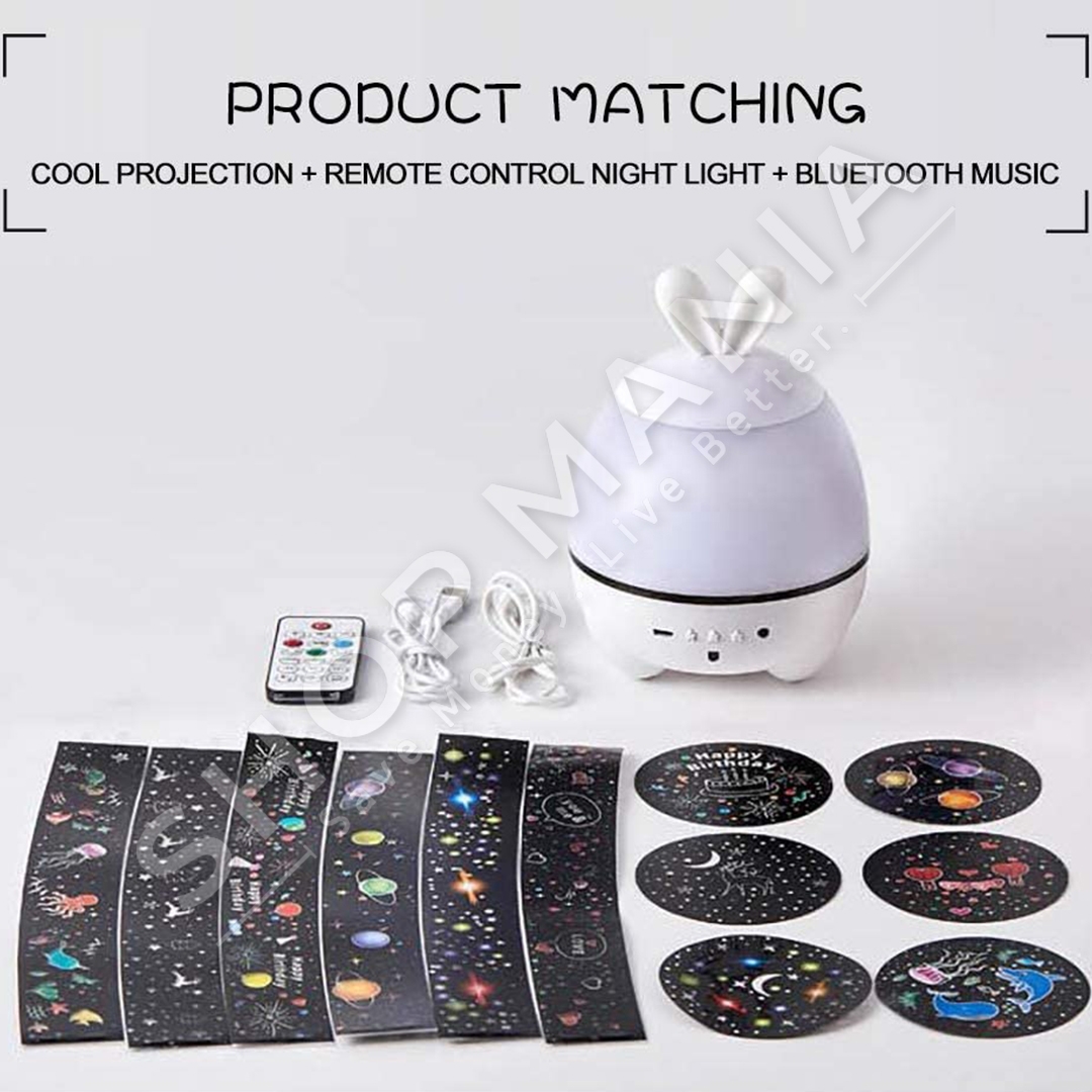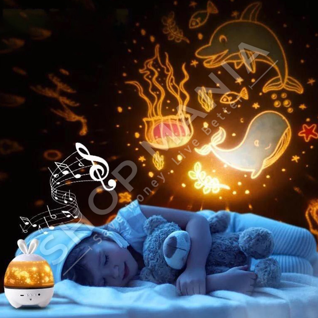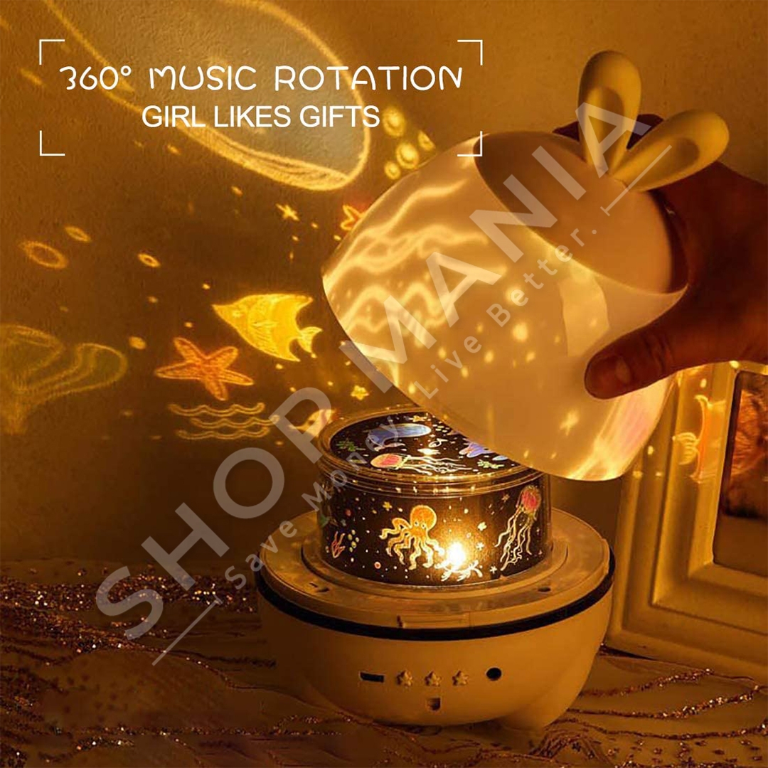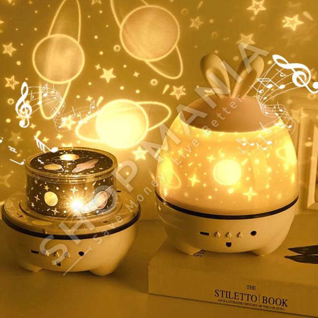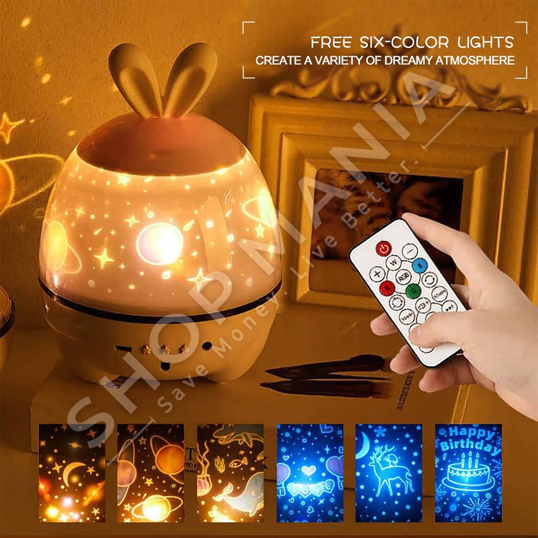 Po "Lucky Rabbit" juaj cili eshte?! Llampe nate dhe projektor per femije me dizajn lepurushi. Me 6 lloje te projeksioneve per te krijuar iluzione te ndryshme. Me llampa LED te ndritshme per te projektuar qiellin plot yje ne mur dhe tavan te dhomes se gjumit.