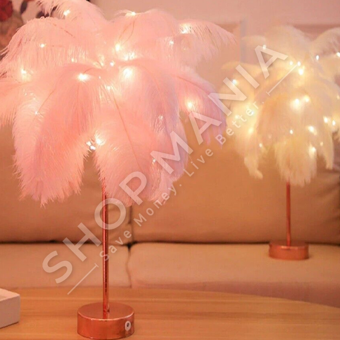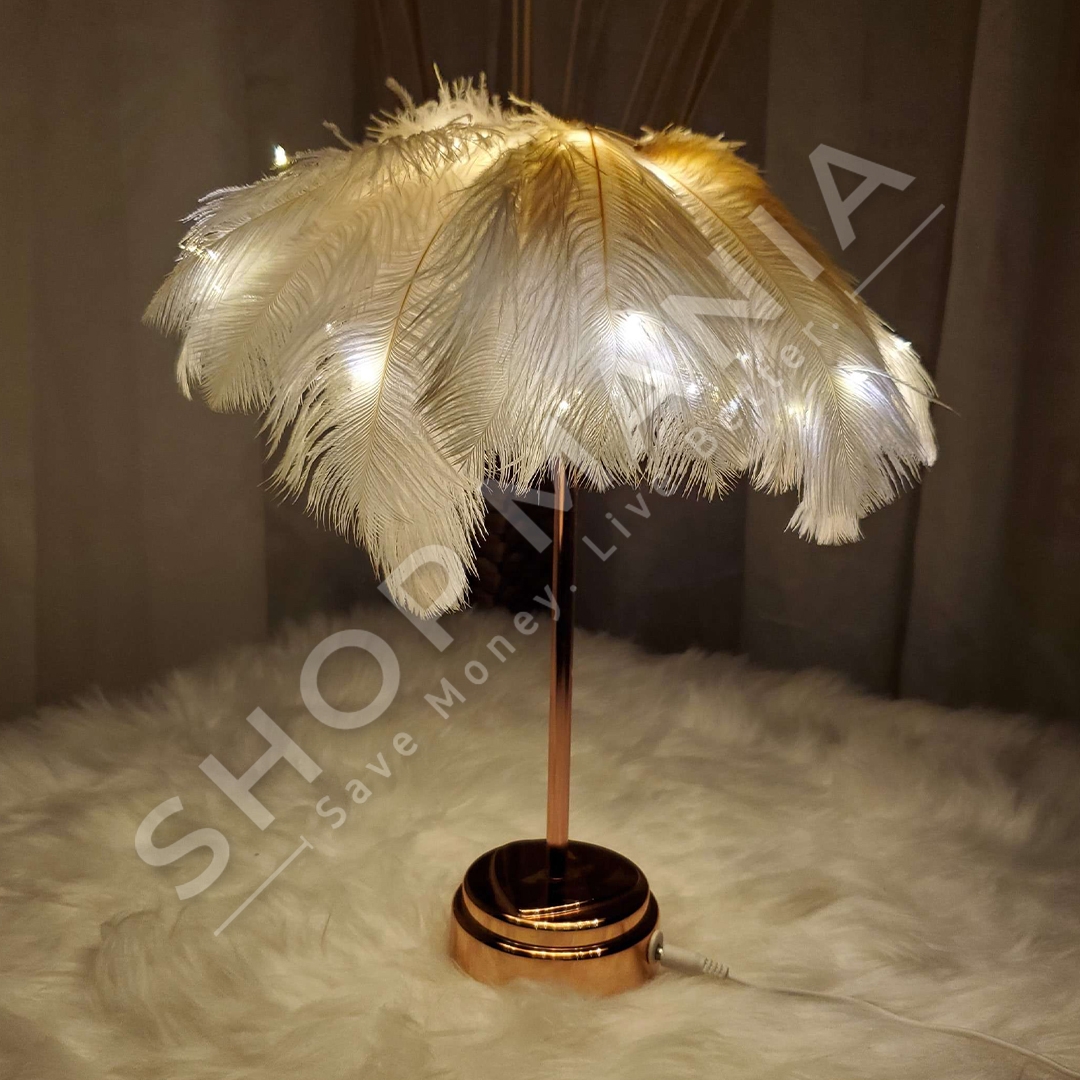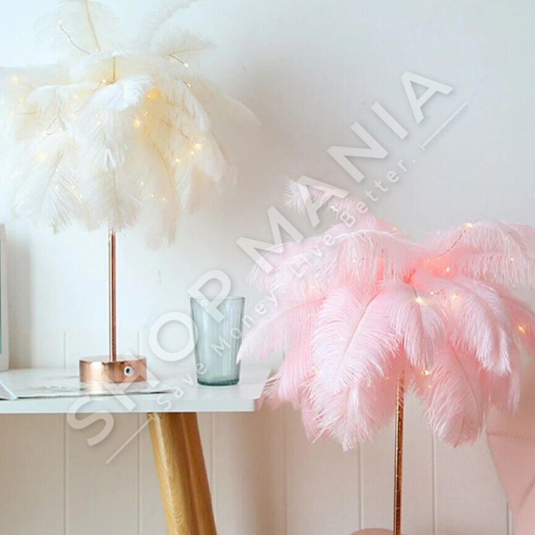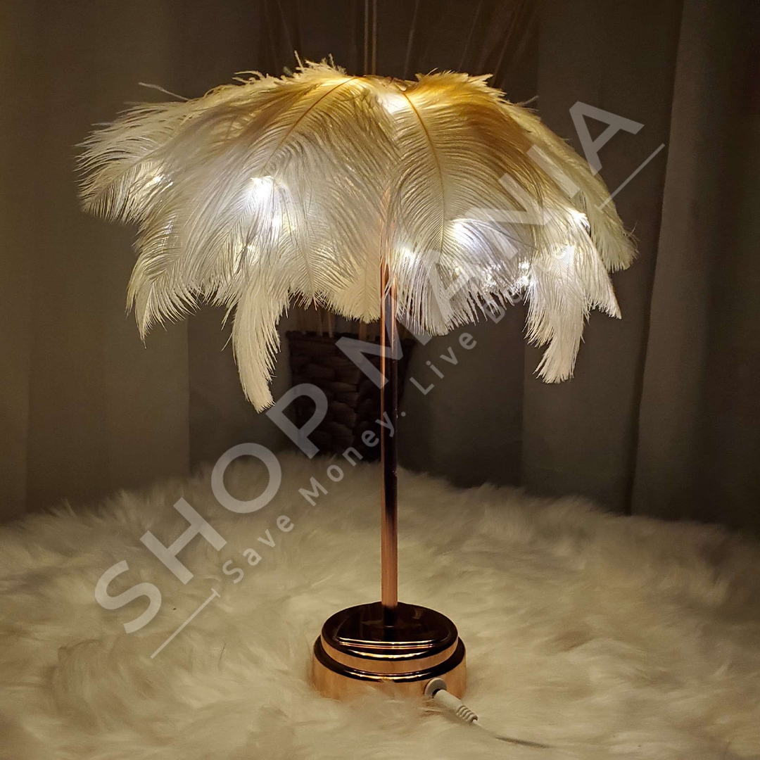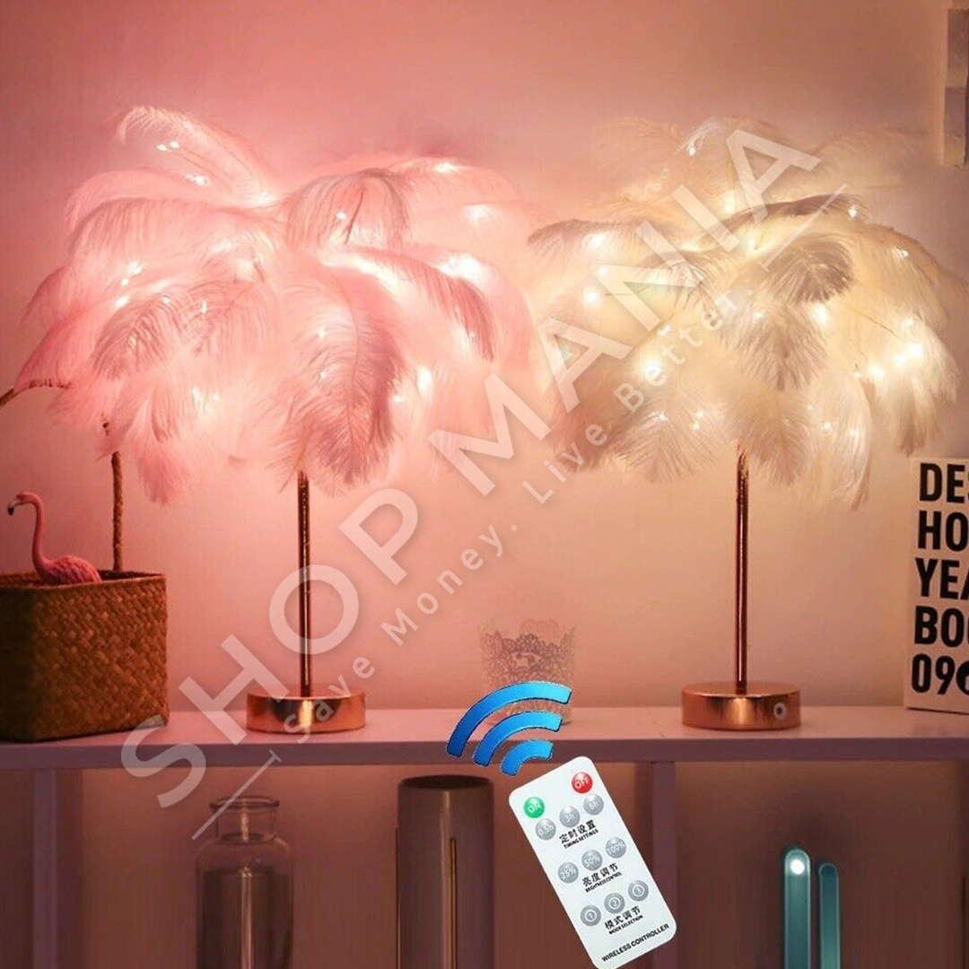 Llampe nate per tavolinen me gjethe "Remote Control Feather Table Lamp DIY Creative Warm Light USB".
