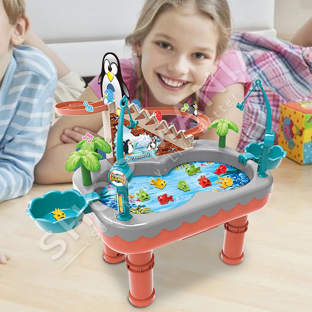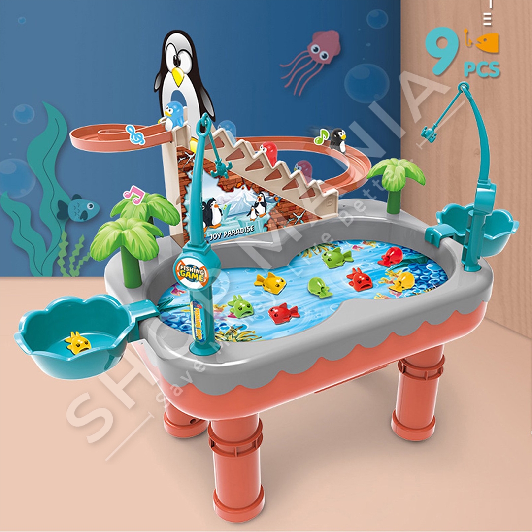 Loje argetuese per peshkim "Fishing Game Toy for Kids-Cute Fishing Table Toys-Electric Rotating Music Fishing Pool-Water Table Bathtub".