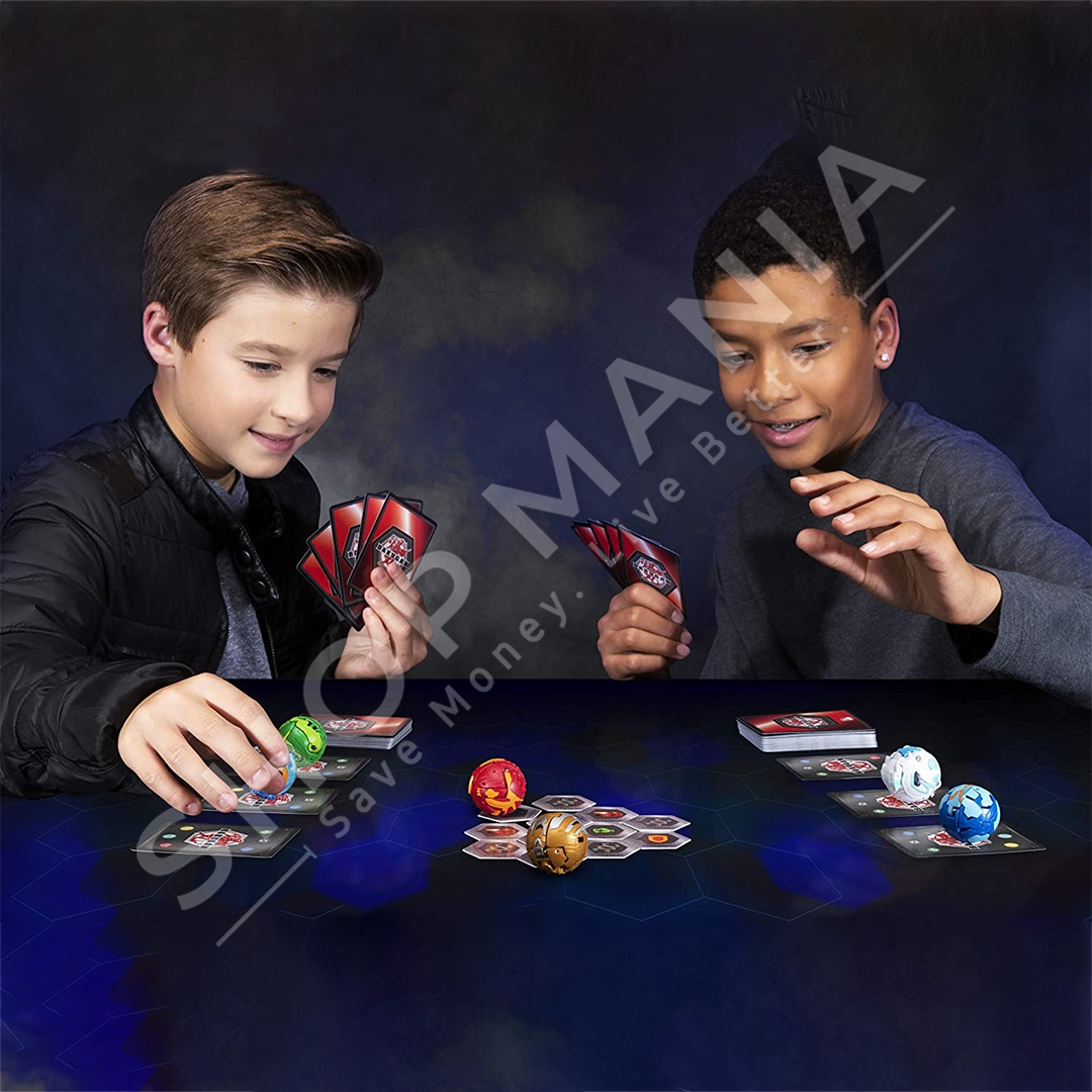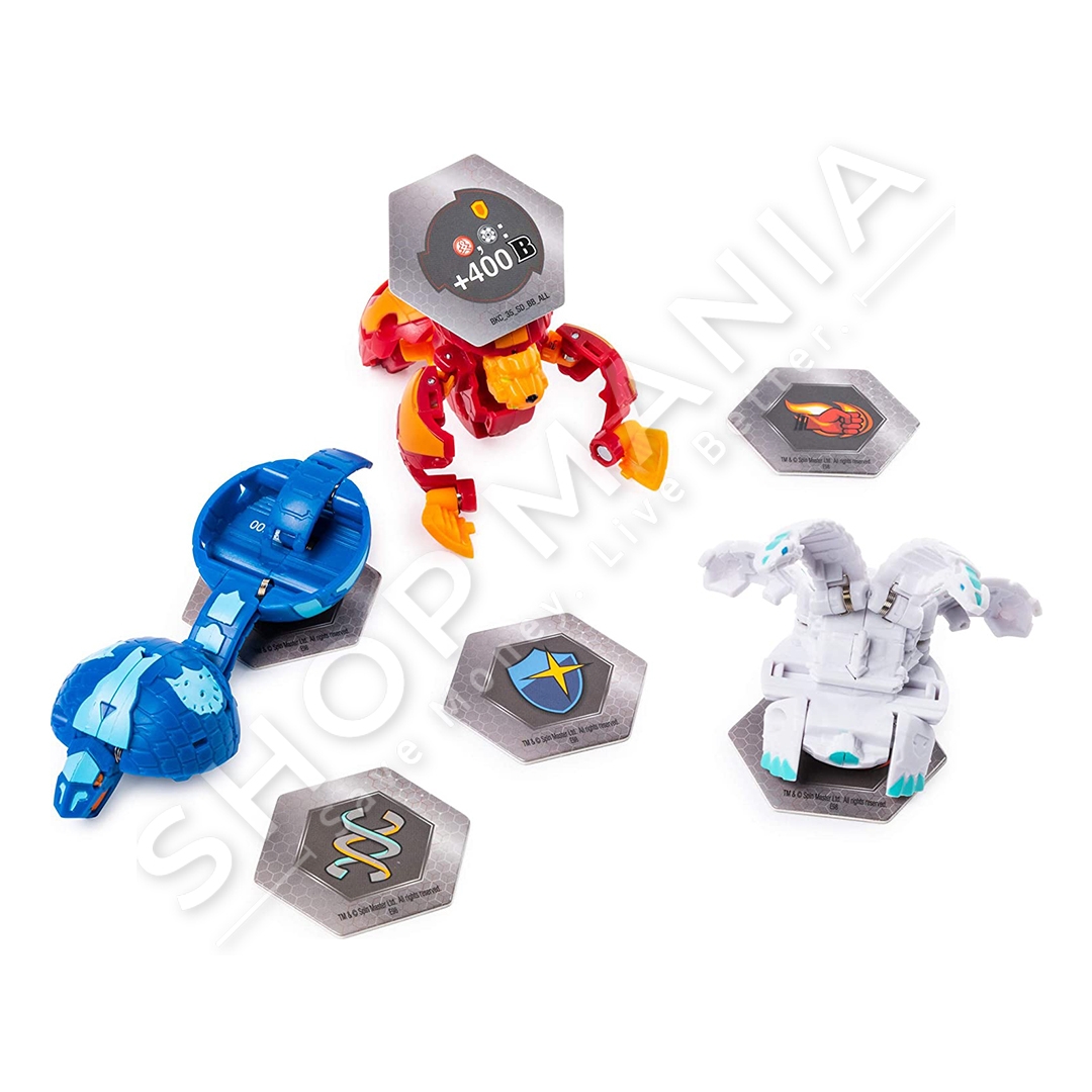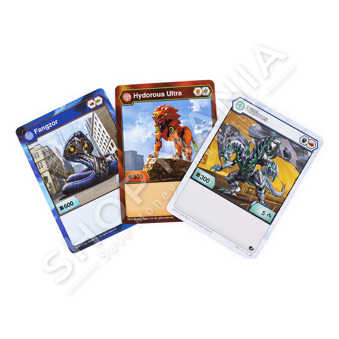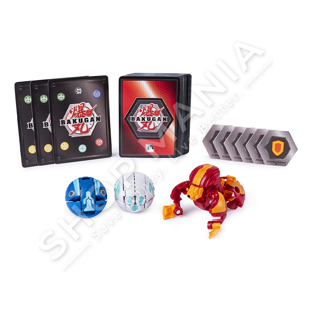 Brenda paketimit ka shume letra dhe 3 Bakugan, gjithcka qe ju nevojitet per te filluar te luani lojen e letrave Bakugan.