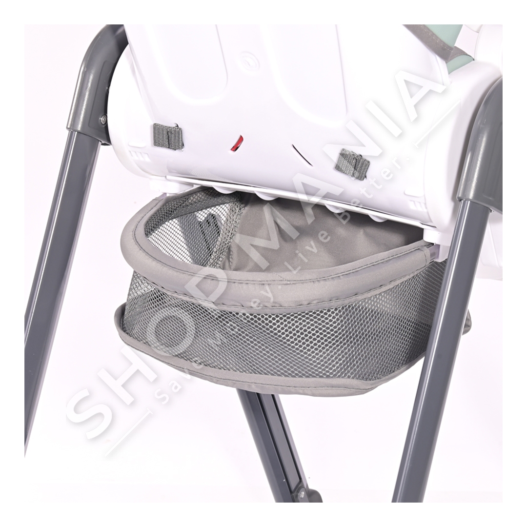 Tabakaja e perparme mund te montohet ne kembet e pasme te karriges se ushqimit