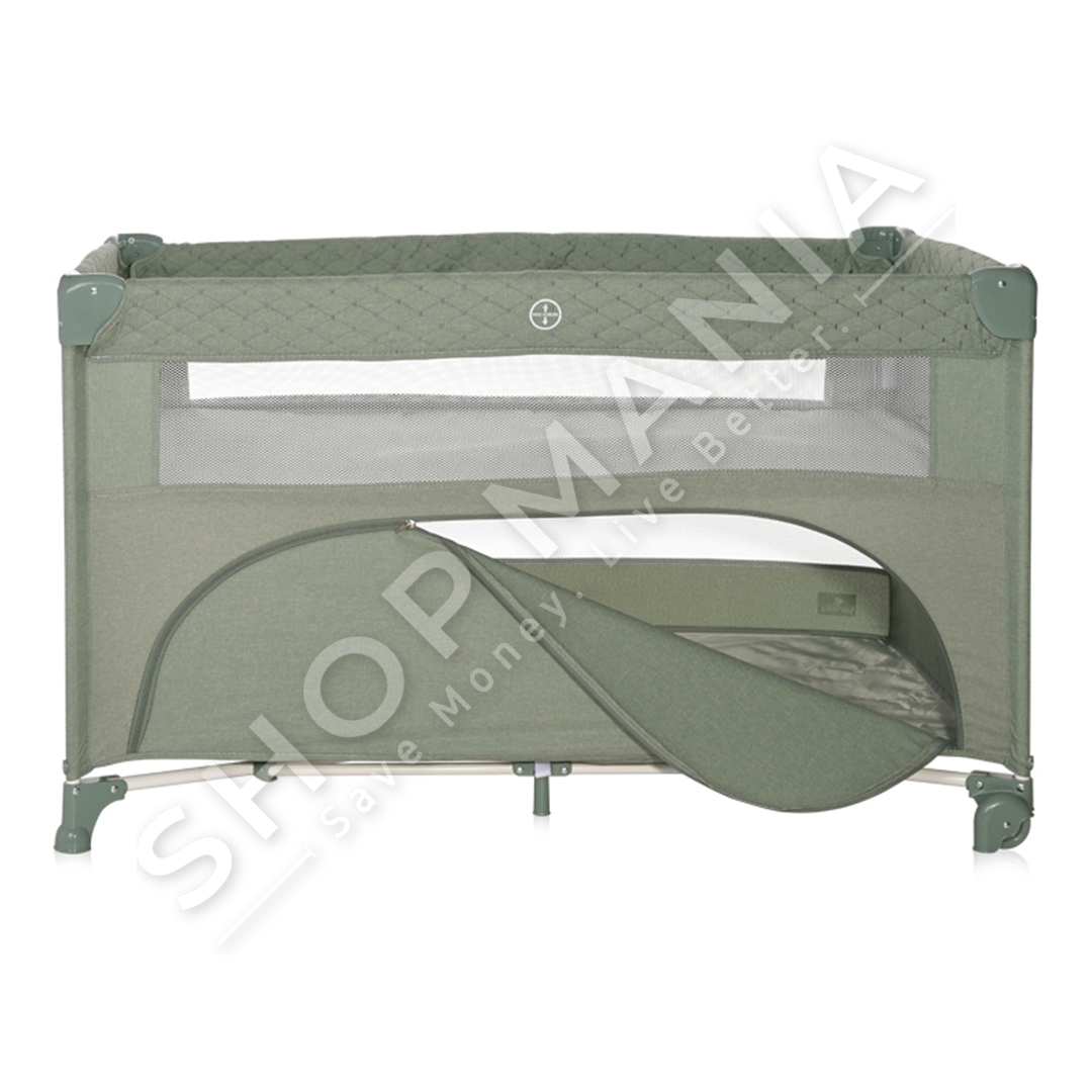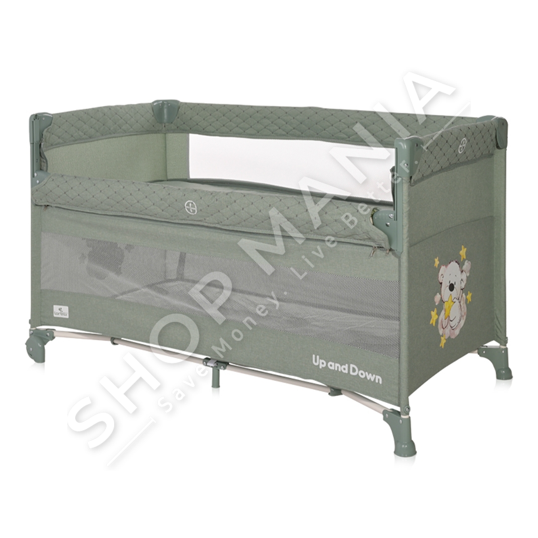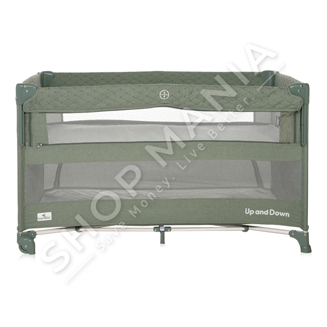 Përshkrimi:Krevat portativ per femije, me dy nivele ne ngjyre jeshile.I sigurt dhe i pershtatshem per te luajtur.Ideal per nje gjume te embel.