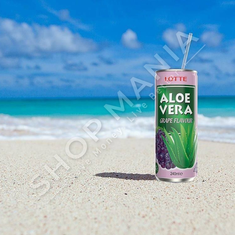 Lengu i ri nga Lotte Aloe Vera me nje permbajtje shume te larte te bimes se Aloe Vera (24%) dhe rrushit, pa gaz dhe freskuese.