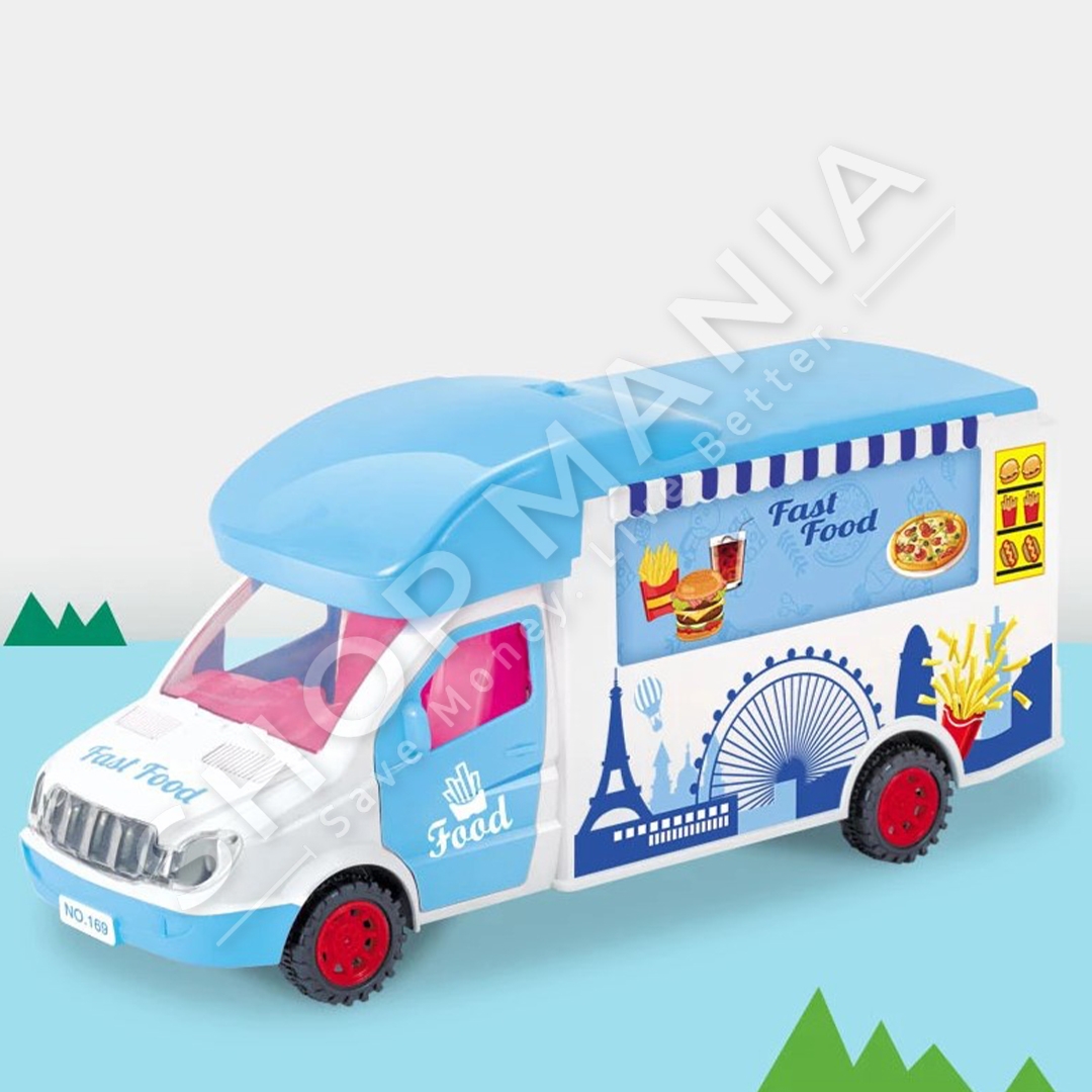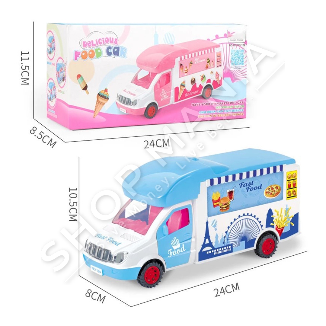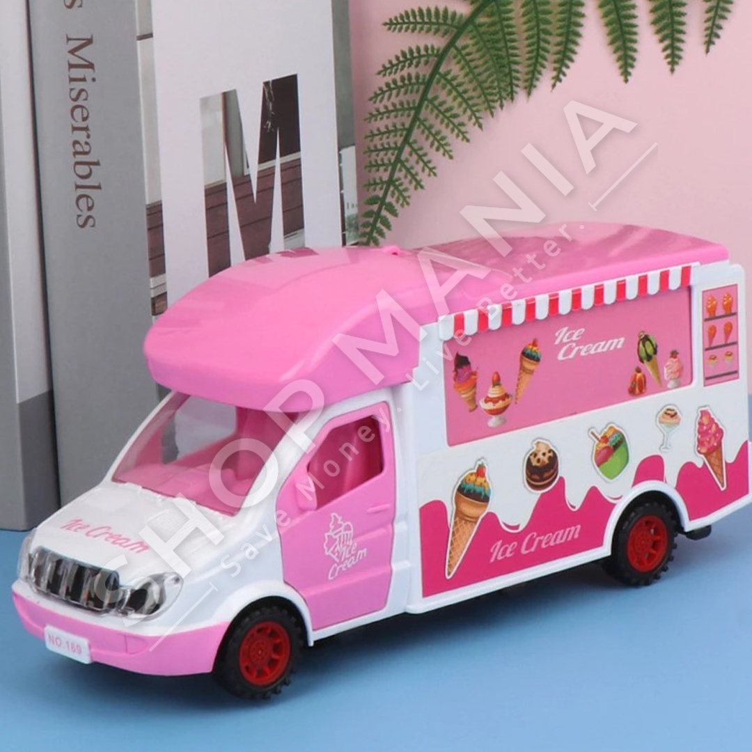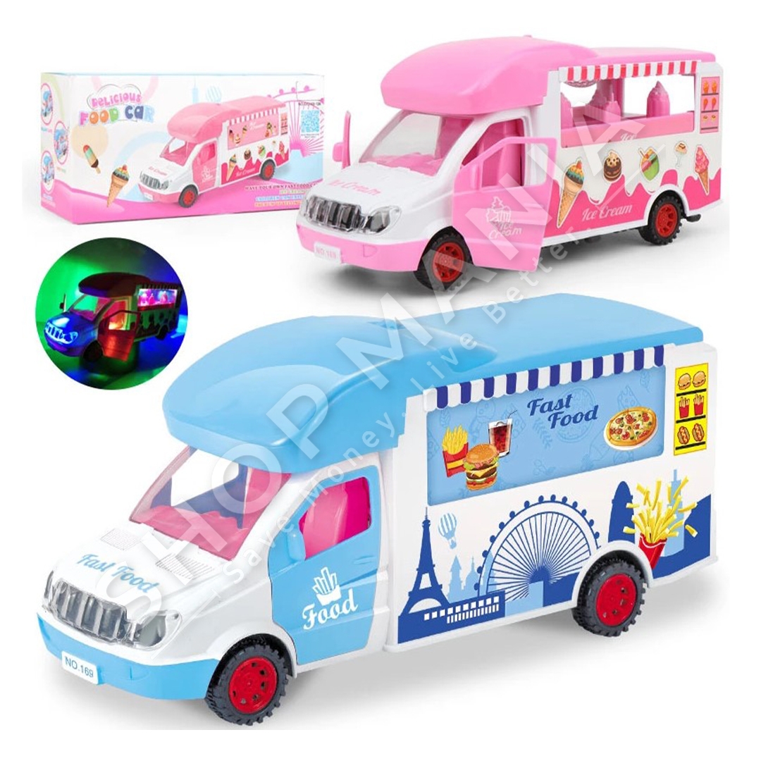 Makina e akulloreve dhe embelsirave "Bump and Go Food Truck Toy for Kids, Battery Operated Ice Cream Food Truck with Music & Light (Pink)" ofron argetim maksimal per vogelushet mbi 3 vjec.
