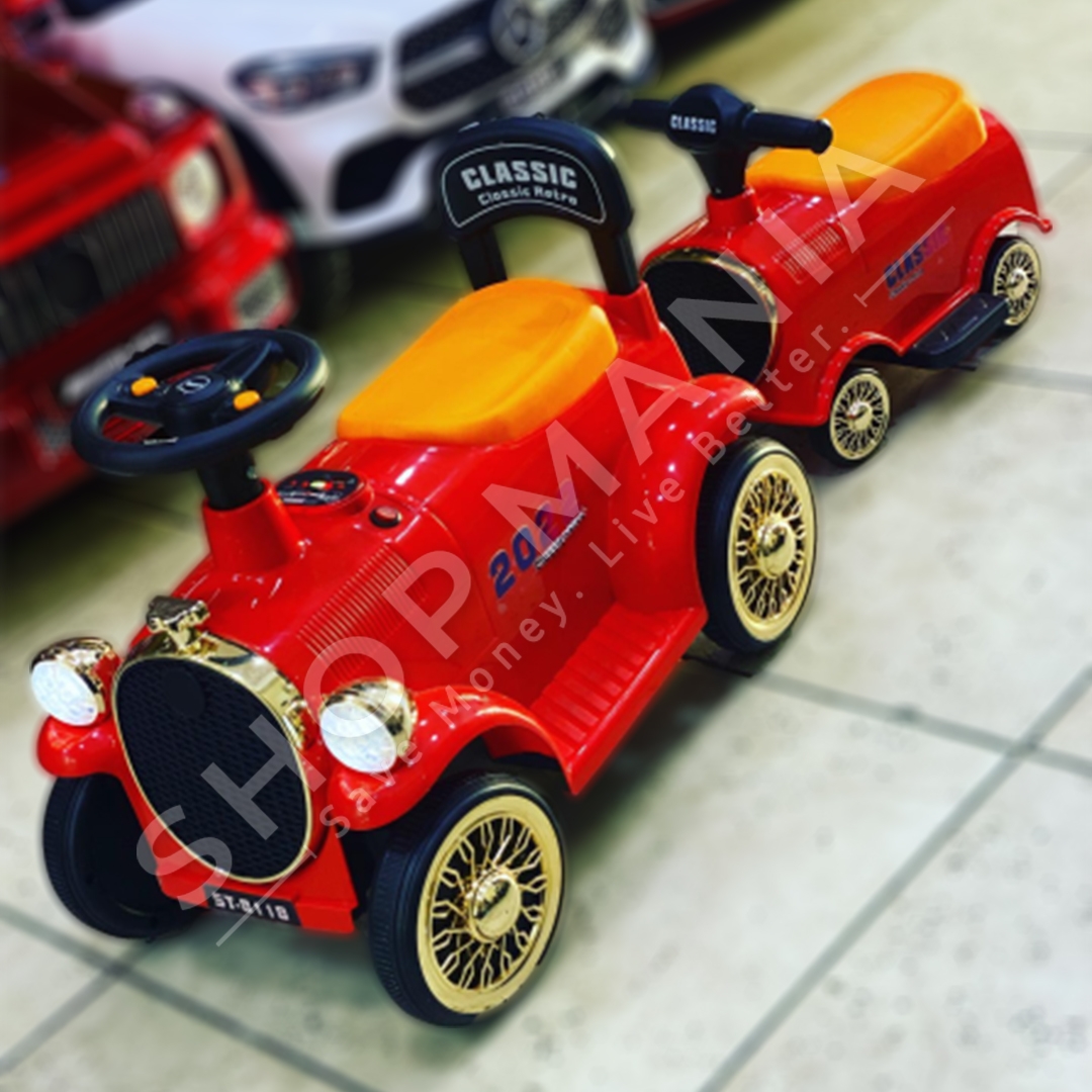 Specifikat:Ideale per duart e vogla te femijeve, qe ata te perjetojne ndjesine e te drejtuarit te nje makineMe timon drejtuesMe goma mishi ne ngjyre te zeze dhe goldMund te punoje perreth 1 ore me nje karikim te vetemMund te lidhet me MP3 dhe ka drita LEDMe muzike lidhje USBMe material prej plastike te forte dhe cilesoreModeli: Classic Retro 2022Ngjyra: E kuqeMosha: 2-6 vjec