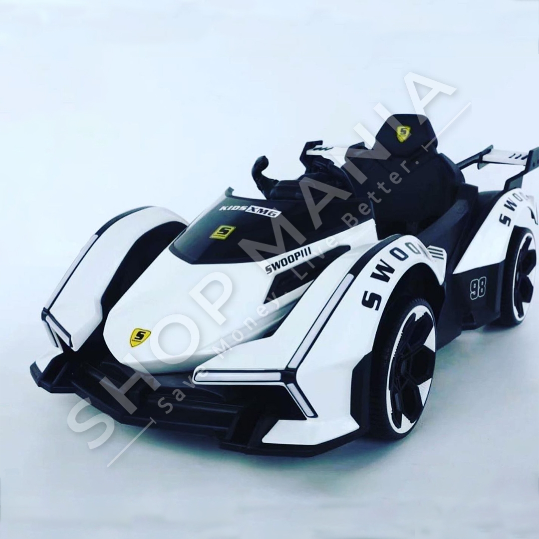 Specifikat:Ideale per duart e vogla te femijeve, qe ata te perjetojne ndjesine e te drejtuarit te nje makineMe frena dhe gaz qe te komandohet nga femijaMe telekomande qe te komandohet nga prinderit deri ne 20 metraMe fishe AUX te cilen e lidh me telefonin dhe femija degjon muzike ne makineMe muzike dhe lidhje USB e mundesi hapje te dyerveMe bateri 12 V te rikarikueshmeMe material prej plastike te forte dhe cilesoreE lekundshmeNgjyra: E bardheMosha: 1-7 vjec