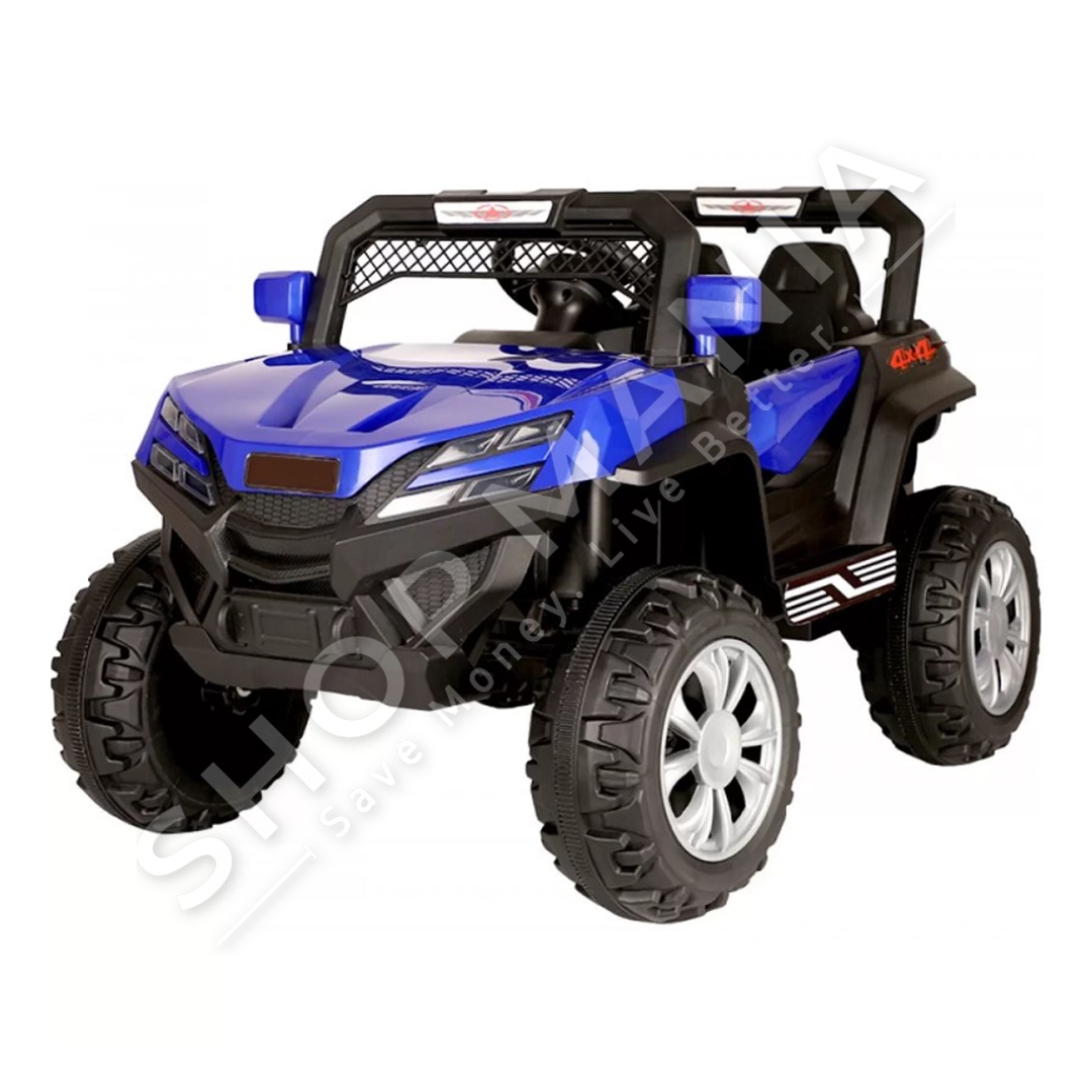 Përshkrimi:Makine per femije me goma te medha, per relieve te veshtira.Me bateri dhe komandim nepermjet telekomandes.Me drita dhe muzike.Me 4 rrota te medha dhe ne ngjyre blu.
