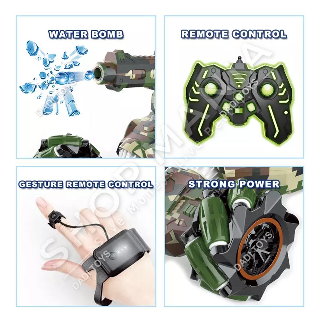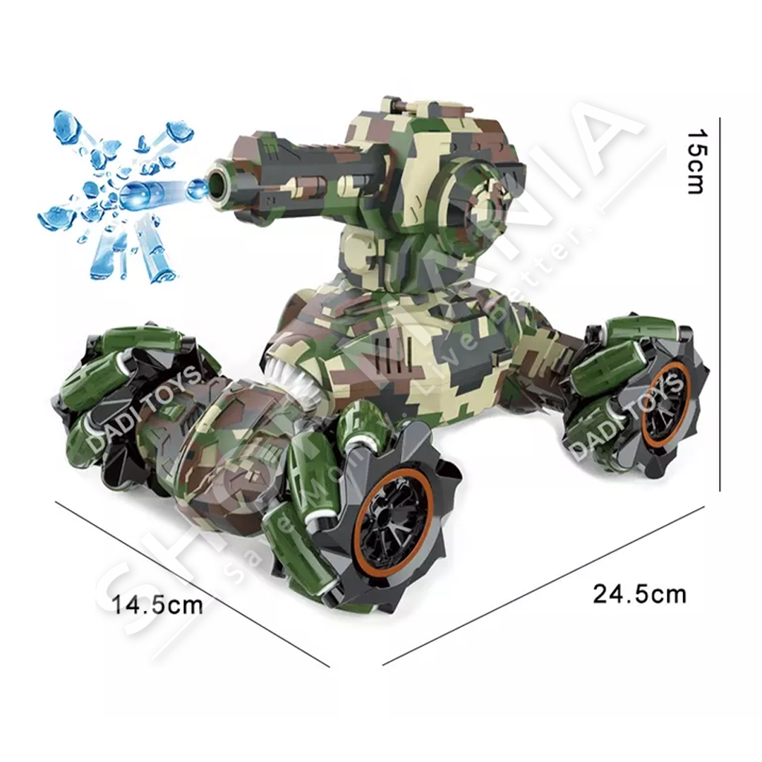 Makine per femije "2.4G Fire Water Bomb RC Tank Car 360° Rotation Speed Drift RC Stunt Car Toy" me telekomande per argetim maksimal.
