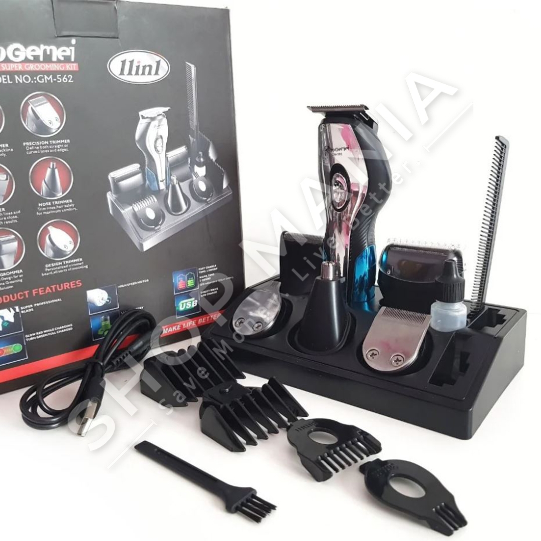 Makine qethese dhe rroje me 11 funksione ne 1 pajisje te vetme nga GEEMY! Mund te prisni qime nga 3 mm deri ne 10 mm. Ne set perfshihen dhe pajisje shtese per elemimin e qimeve te padeshiruara ne vesh dhe ne hunde.