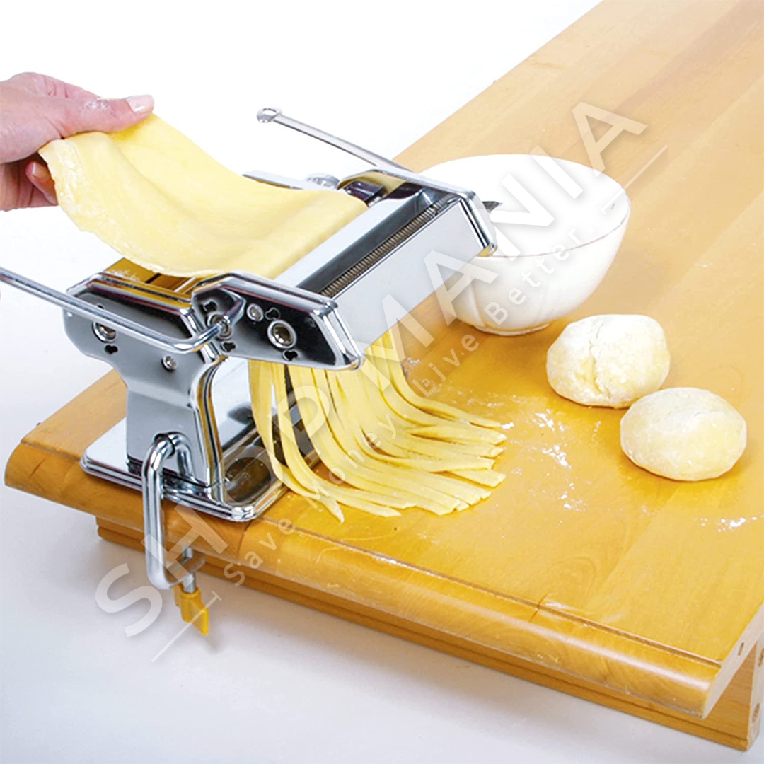 Pershkrimi: Jeni adhurues i pastave? Ky produkt eshte ideal per ju. Makineri makaronash manuale prej celiku inoks me cilesi te larte. Makineria eshte ideale per lazanjat, spageti, tagliatelle, ravioli etj.