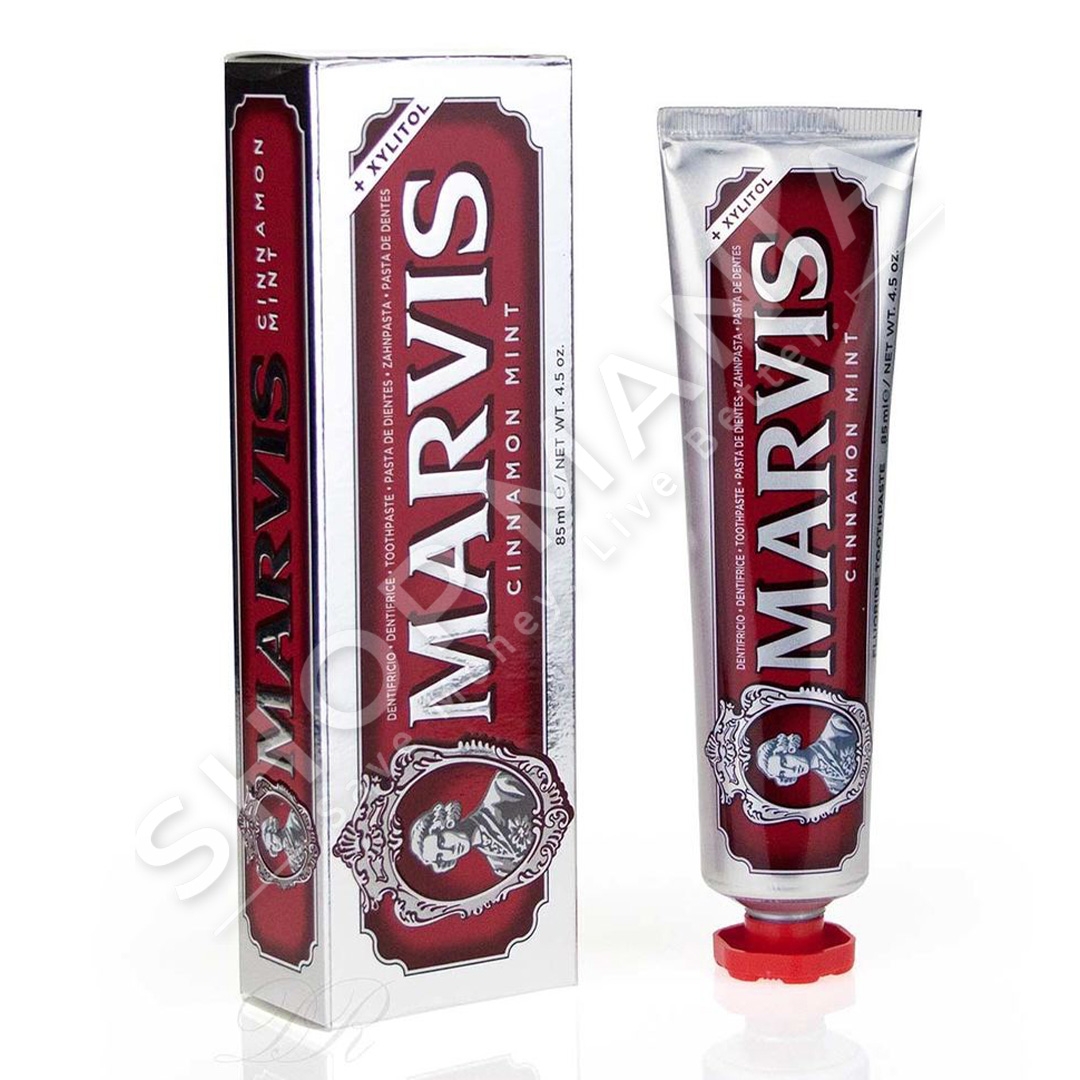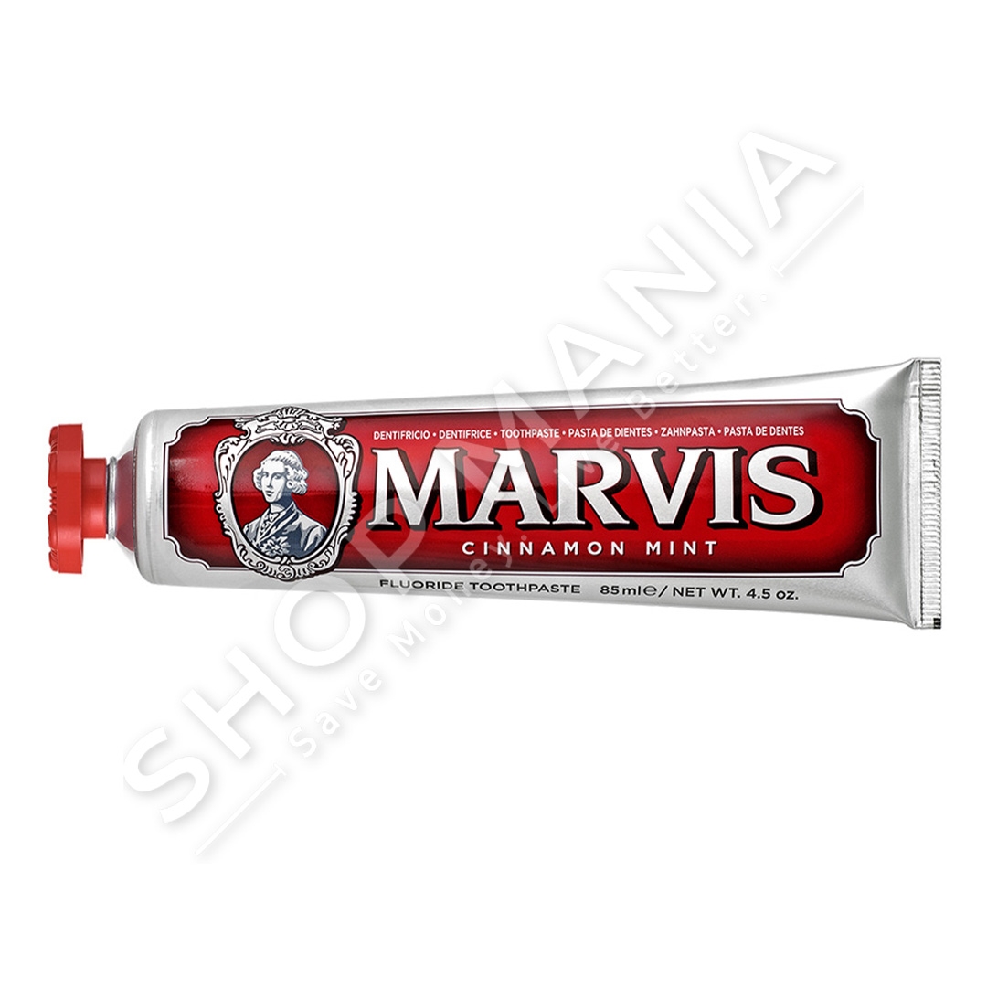 Paste dhembesh Cinnamon Mint nga Marvis, kremoze dhe me shije te ftohte menteje dhe kanelle.