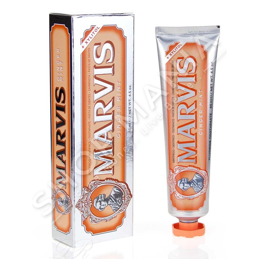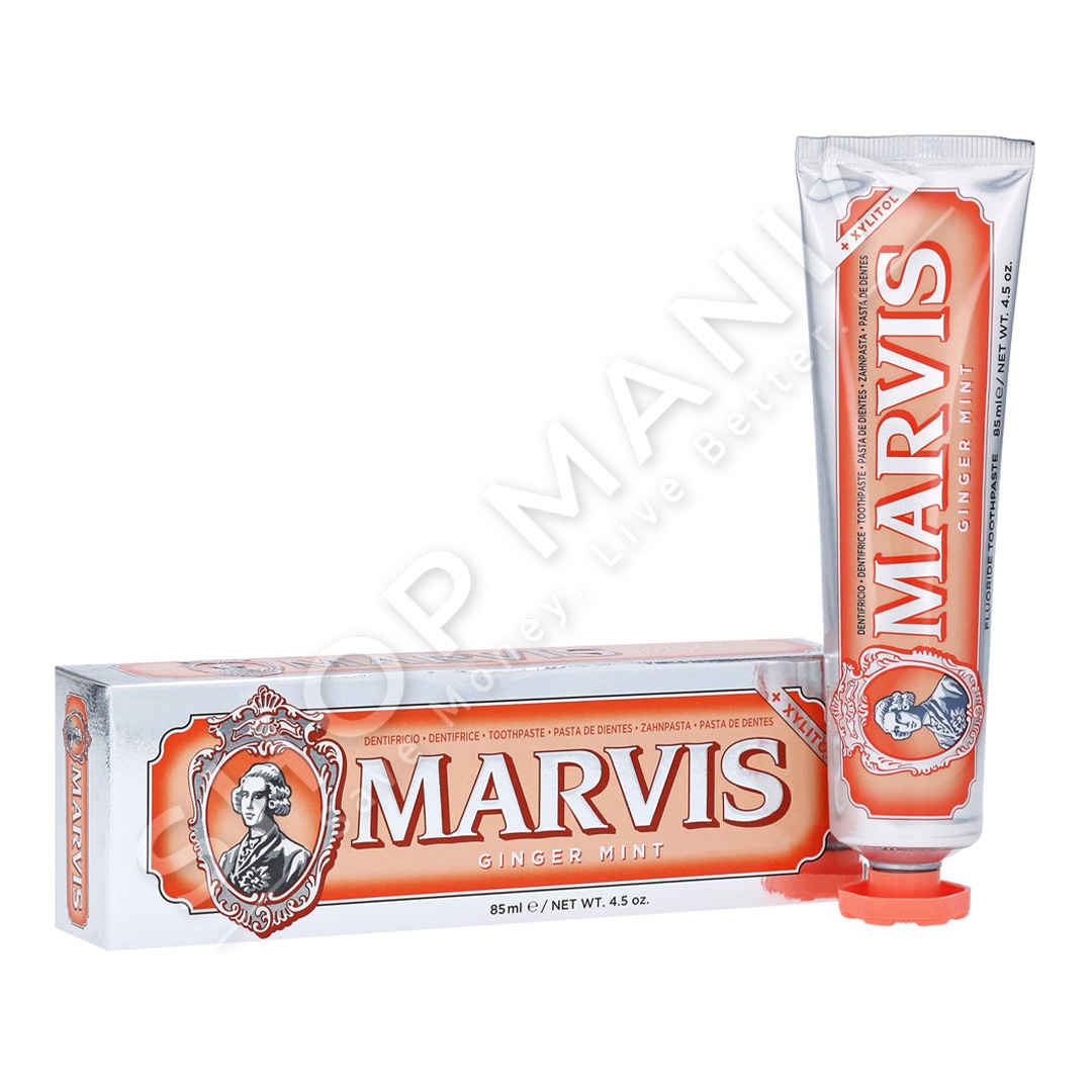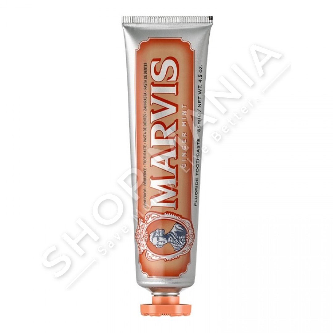 Paste dhembesh Ginger Mint nga Marvis, kremoze dhe me shije te ftohte menteje dhe xhenxhefil pikant.