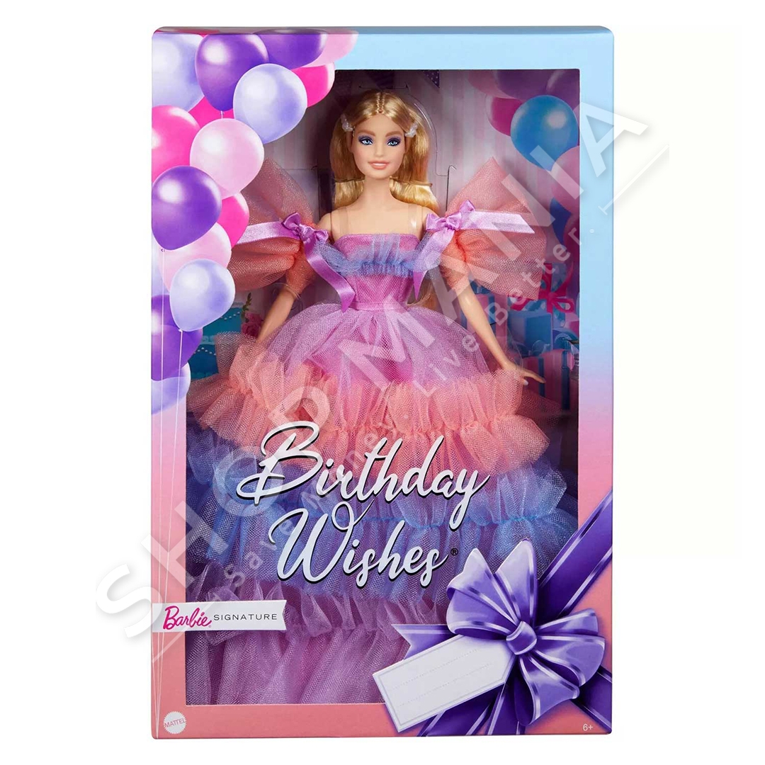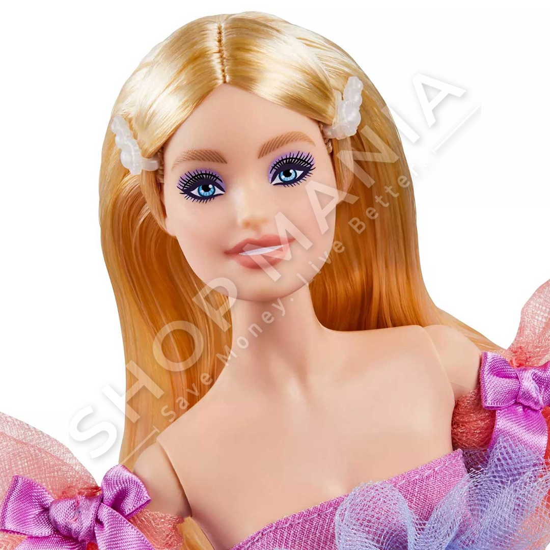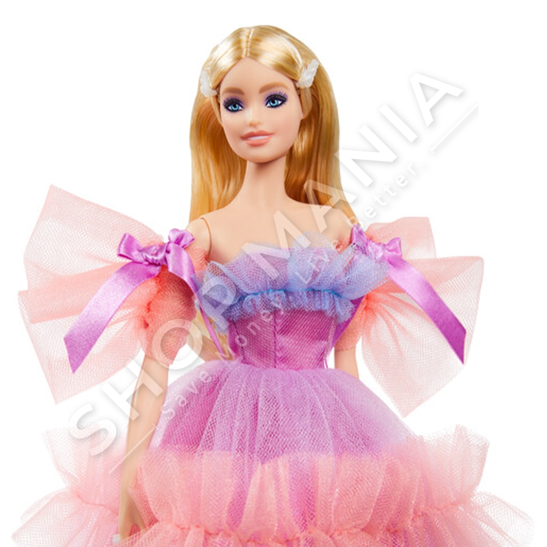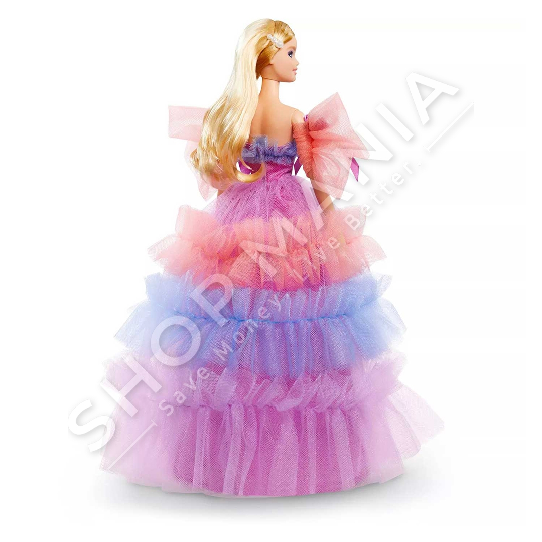 Kukulla Barbie Birthday Wishes me nje fustan te mrekullueshem tyl shumengjyresh.