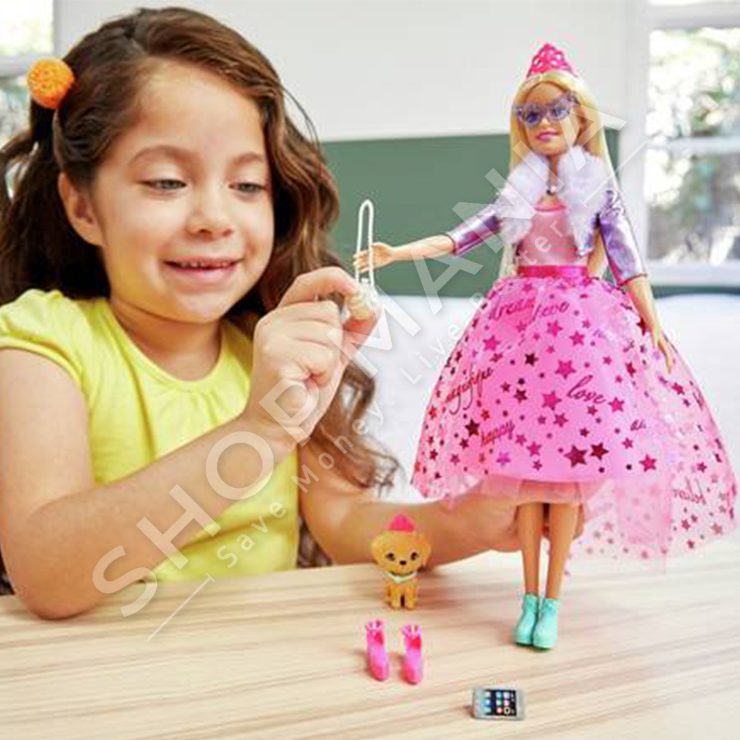 Kukull Barbie e frymezuar nga filmi i animuar Adventure Barbie Princess. E veshur me xhakete metalike me push dhe nje fund roze te fryre. Vjen se bashku me nje qenushe te lezetshme me gjerdan. Me aksesoret si: gjerdan elegant, nje cante te bardhe, nje pale syze, nje smartphone.
