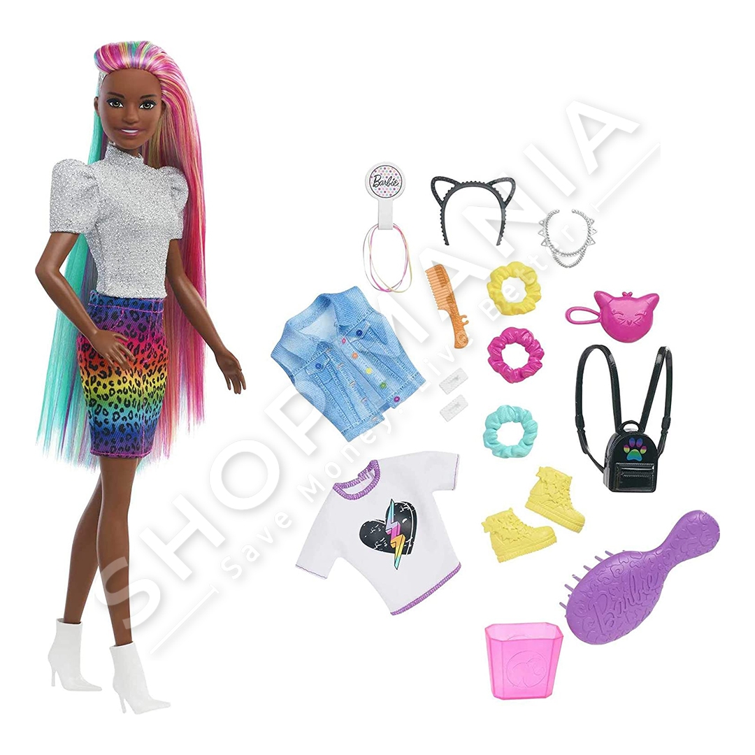 Kukulles Barbie Rainbow Cheetah Hair i pelqen te eksploroje me ngjyre dhe stile te ndryshme per te gjetur pamjen perfekte te saj.