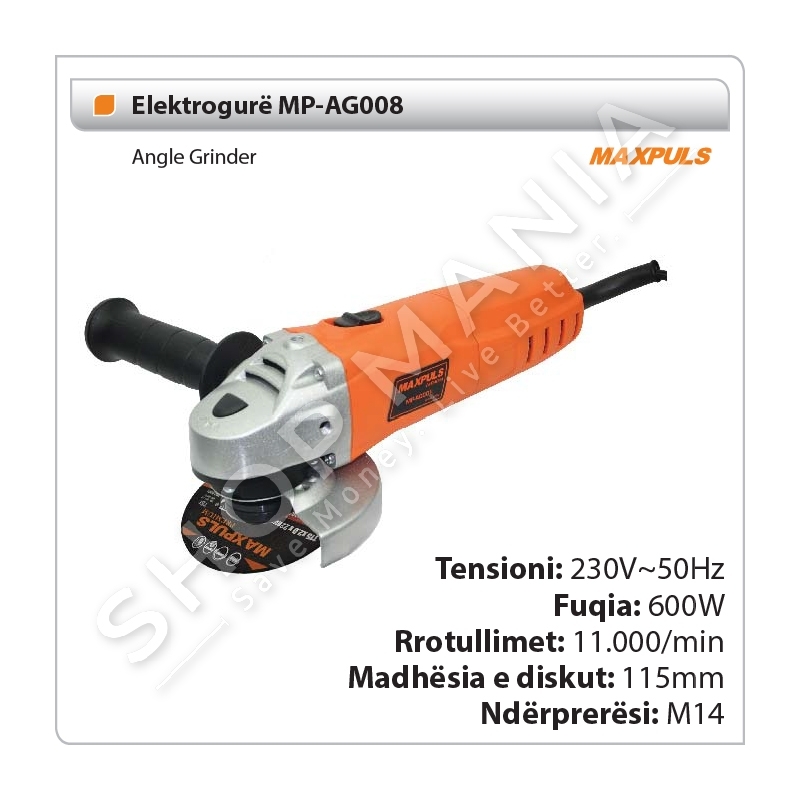 Zmeriluesi me 600W fuqi dhe me tension qe shkon deri ne 50Hz.Perimetri i tij i vogel krahasuar me mjetet e tjera te ngjashme ne treg.Dizajn kompakt dhe pesha e lehte sigurojne nje pune pa lodhje.Specifikat: