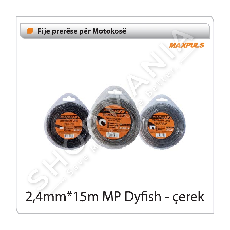 Përshkrimi: Fije per prerese bari universale. Perdoret per te gjitha llojet e prereseve te barit. Ka nje trashesi prej 2.4mm*15m dyfish-cerek. Mundesojne nje prerje te shpejte dhe efikase.